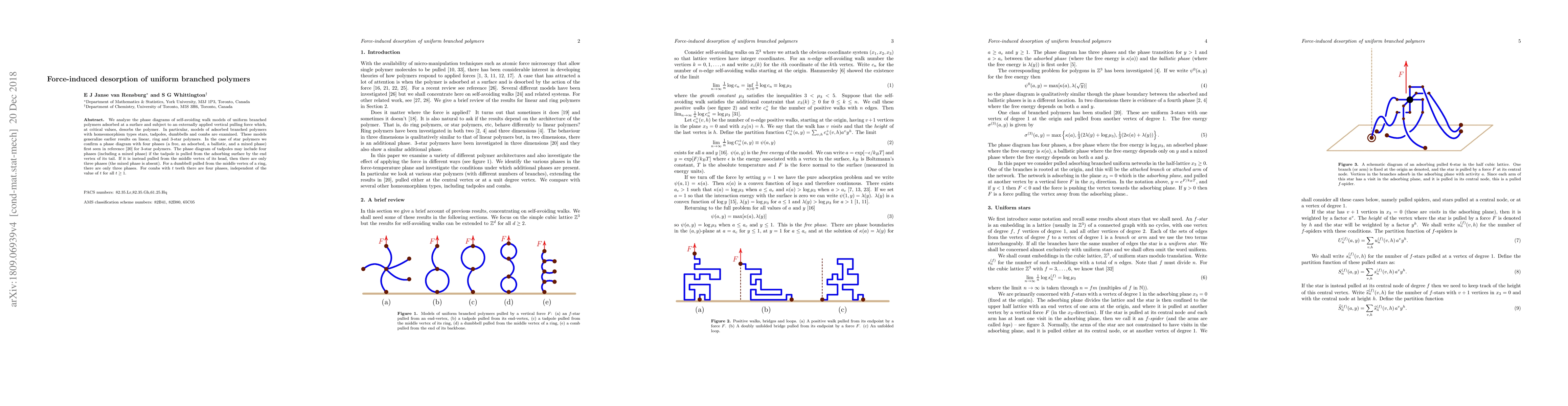 Researchers analyzed phase diagrams for uniform branched polymers under external force, discovering four-phase systems for star and comb models, and finding variations in phases for tadpole and dumbbell models.