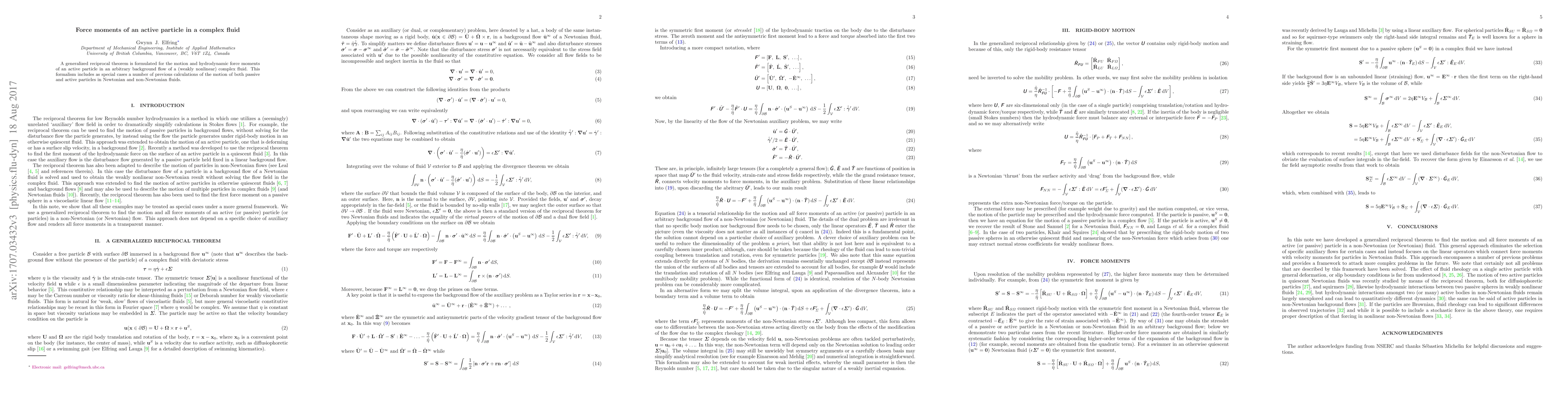 Summary: The paper formulates a generalized reciprocal theorem to analyze the motion and hydrodynamic force moments of active particles in complex fluids, encompassing both passive and active particles in Newtonian and non-Newtonian fluid environments. This framework extends previous studies on particle dynamics in various fluid types.