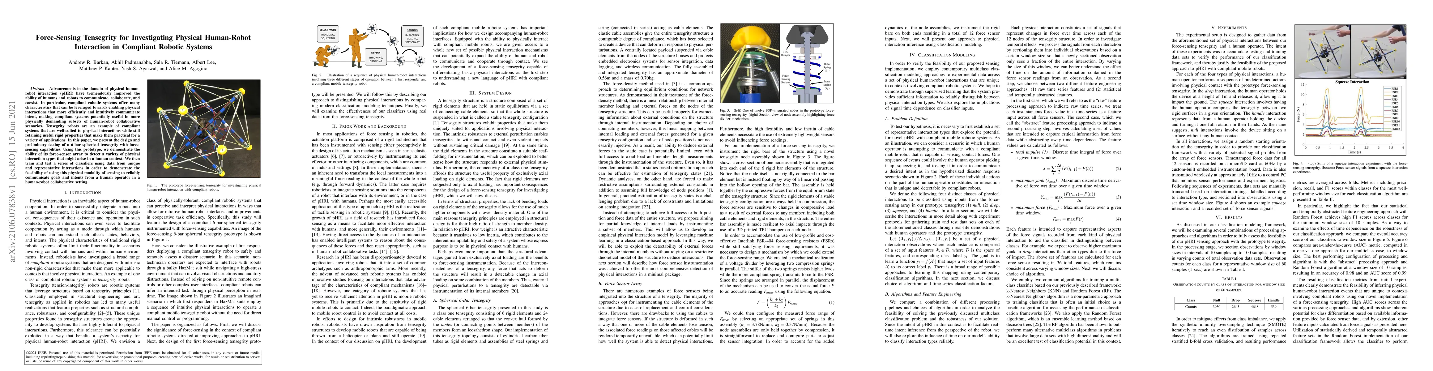 Advancements in the domain of physical human-robot interaction (pHRI) have tremendously improved the ability of humans and robots to communicate, collaborate, and coexist. In particular, compliant robotic systems offer many characteristics that can be leveraged towards enabling physical interactions that more efficiently and intuitively communicate intent, making compliant systems potentially useful in more physically demanding subsets of human-robot collaborative scenarios. Tensegrity robots are an example of compliant systems that are well-suited to physical interactions while still retaining useful rigid properties that make them practical for a variety of applications. In this paper, we present the design and preliminary testing of a 6-bar spherical tensegrity with force-sensing capabilities. Using this prototype, we demonstrate the ability of its force-sensor array to detect a variety of physical interaction types that might arise in a human context. We then train and test a series of classifiers using data from unique and representative interactions in order to demonstrate the feasibility of using this physical modality of sensing to reliably communicate goals and intents from a human operator in a human-robot collaborative setting.