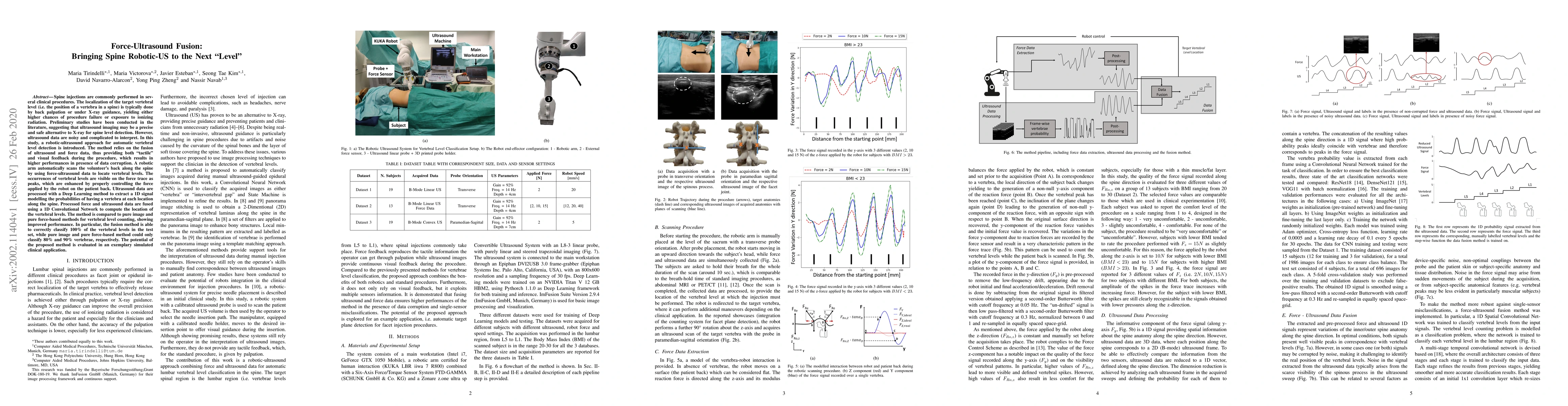 This study introduces a robotic-ultrasound method for precise vertebral level detection in spine injections, fusing ultrasound and force data to provide both tactile and visual feedback. The approach uses Deep Learning for signal processing and a 1D Convolutional Network for data fusion, achieving 100% accuracy in vertebral level classification, outperforming pure image and force-based methods.
