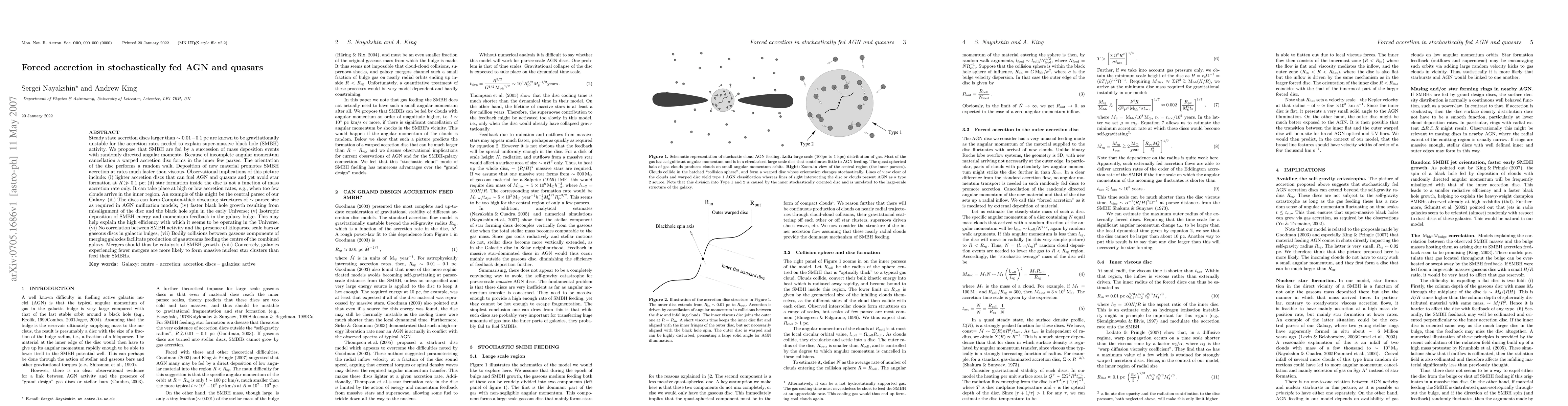 Steady state accretion discs larger than ~ 0.01-0.1 pc are known to be gravitationally unstable for the accretion rates needed to explain super-massive black hole (SMBH) activity. We propose that SMBH are fed by a succession of mass deposition events with randomly directed angular momenta. Because of incomplete angular momentum cancellation a warped accretion disc forms in the inner few parsec. The orientation of the disc performs a random walk. Deposition of new material promotes SMBH accretion at rates much faster than viscous. Observational implications of this picture include: (i) lighter accretion discs that can fuel AGN and quasars and yet avoid star formation at R >> 0.1 pc; (ii) star formation inside the disc is not a function of mass accretion rate only. It can take place at high or low accretion rates, e.g., when too few clouds arrive in the inner region. An example of this might be the central parsec of our Galaxy. (iii) The discs can form Compton-thick obscuring structures of ~ parsec size as required in AGN unification models; (iv) faster black hole growth resulting from misalignment of the disc and the black hole spin in the early Universe; (v) Isotropic deposition of SMBH energy and momentum feedback in the galaxy bulge. This may help explain the high efficiency with which it seems to be operating in the Universe. (vi) No correlation between SMBH activity and the presence of kiloparsec scale bars or gaseous discs in galactic bulges; (vii) Bodily collisions between gaseous components of merging galaxies facilitate production of gas streams feeding the centre of the combined galaxy. Mergers should thus be catalysts of SMBH growth. (viii) Conversely, galaxies experiencing fewer mergers are more likely to form massive nuclear star clusters than feed their SMBHs.