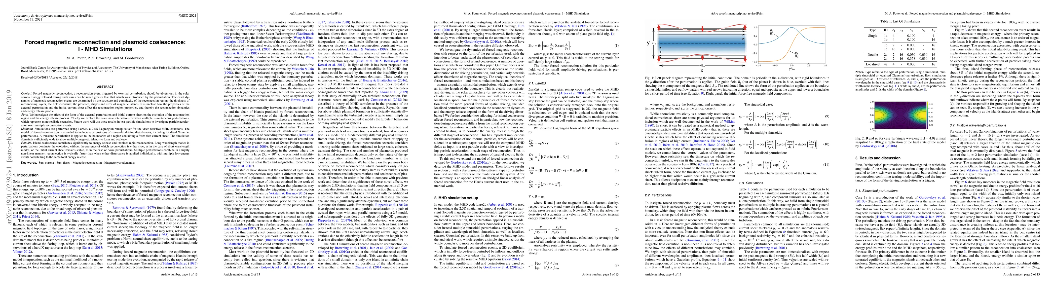 Researchers investigated how external perturbations affect magnetic reconnection in the solar corona, finding that multiple simultaneous disturbances can lead to faster and more energetic reconnections.