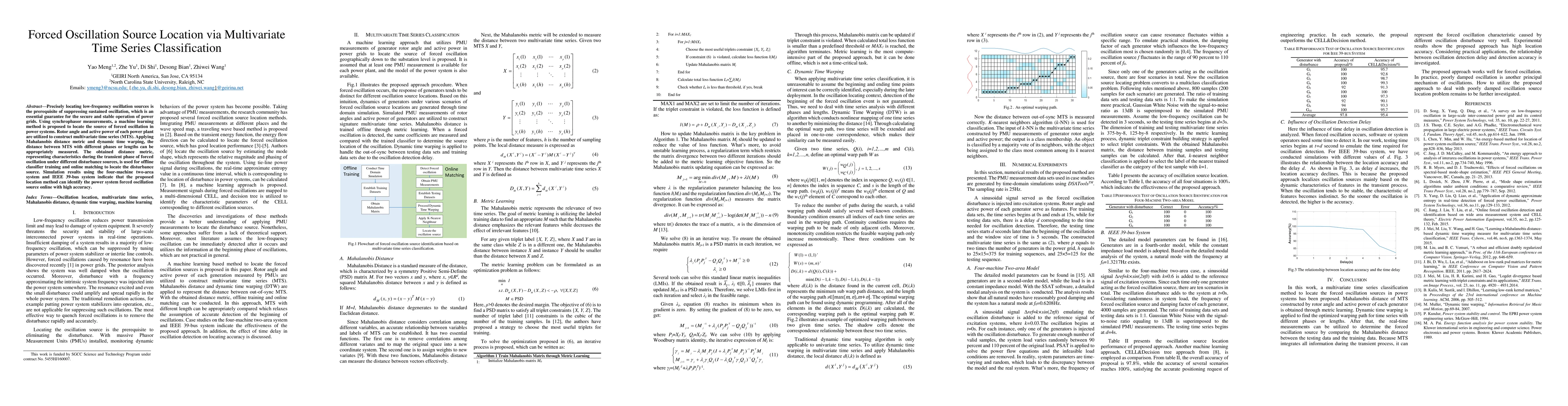 This paper proposes a machine learning method for locating low-frequency oscillation sources in power grids using synchrophasor measurements. The method constructs multivariate time series from rotor angle and active power data, applying Mahalanobis distance and dynamic time warping for accurate distance measurement, which is then used for offline classifier training and online matching to identify oscillation sources with high accuracy.