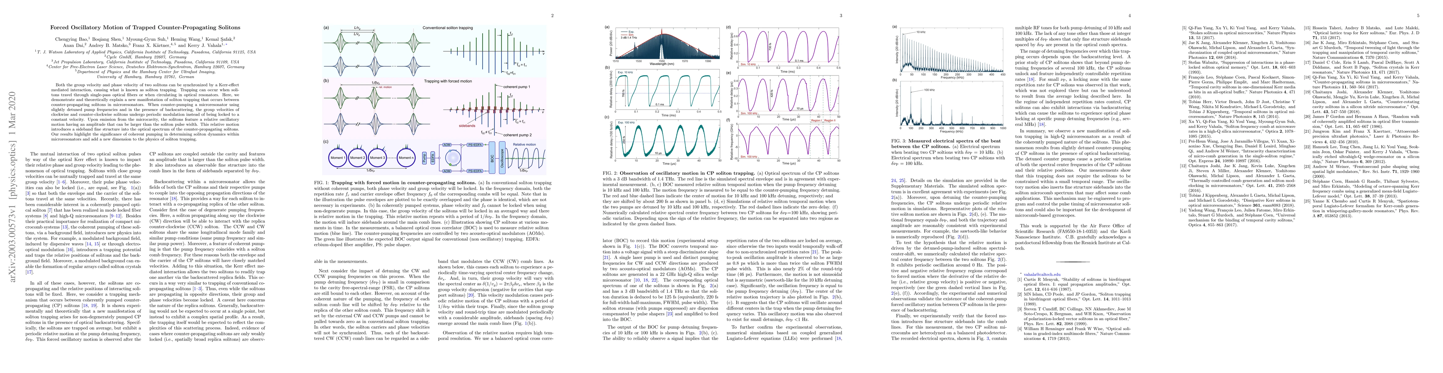 This study investigates the forced oscillatory motion of trapped counter-propagating solitons in microresonators, revealing periodic modulation in soliton group velocities due to coherent pumping and backscattering, resulting in relative oscillatory motion and a fine structure in the optical spectrum.