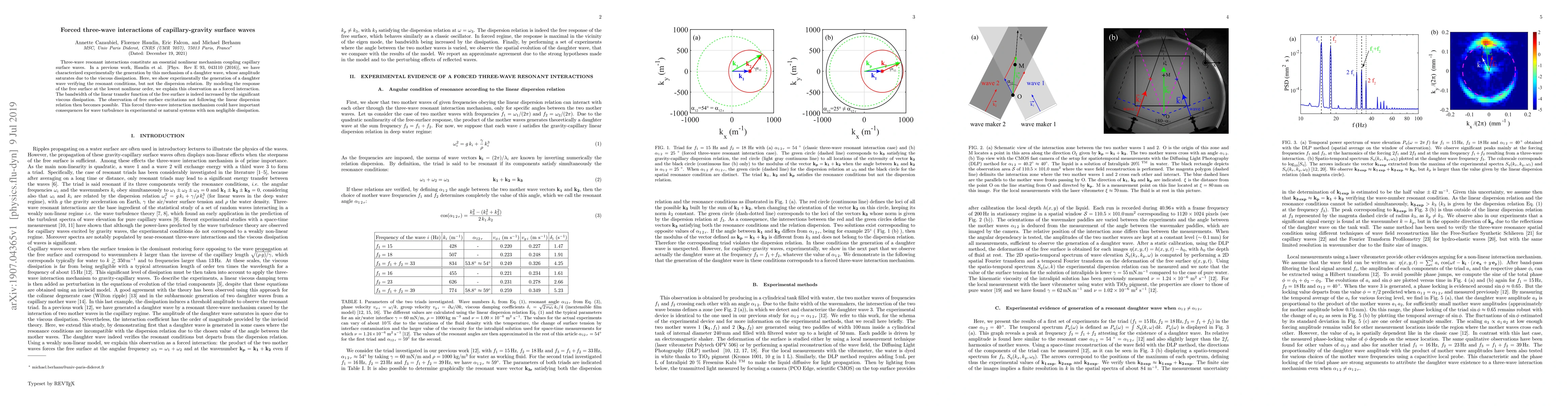 The paper presents a novel experimental and theoretical framework for understanding forced three-wave resonant interactions in capillary-gravity surface waves, extending previous knowledge on wave interactions in weakly nonlinear systems with dissipation.