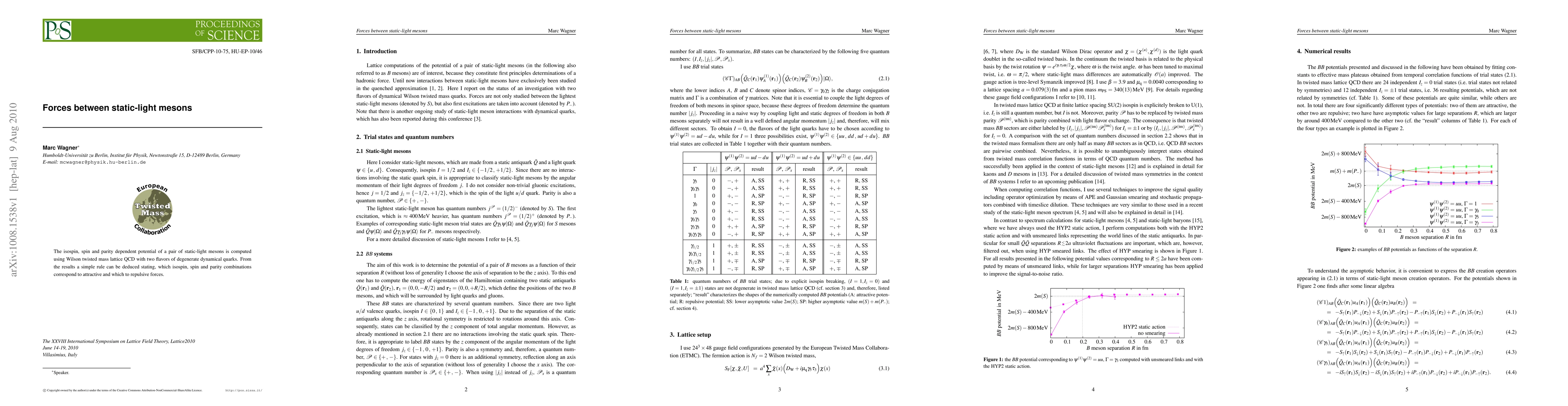 This study computes the potential between static-light mesons using Wilson twisted mass lattice QCD, determining that specific isospin, spin, and parity combinations lead to attractive forces while others result in repulsive forces.