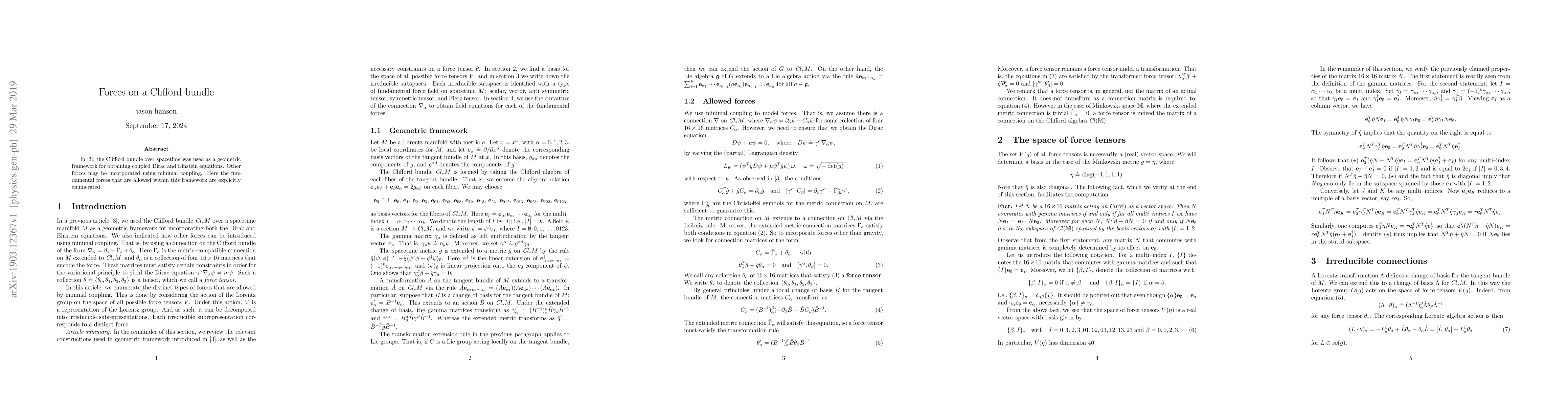 This paper enumerates the fundamental forces that can be incorporated within the geometric framework of a Clifford bundle over spacetime, extending the coupled Dirac and Einstein equations to include other forces through minimal coupling.