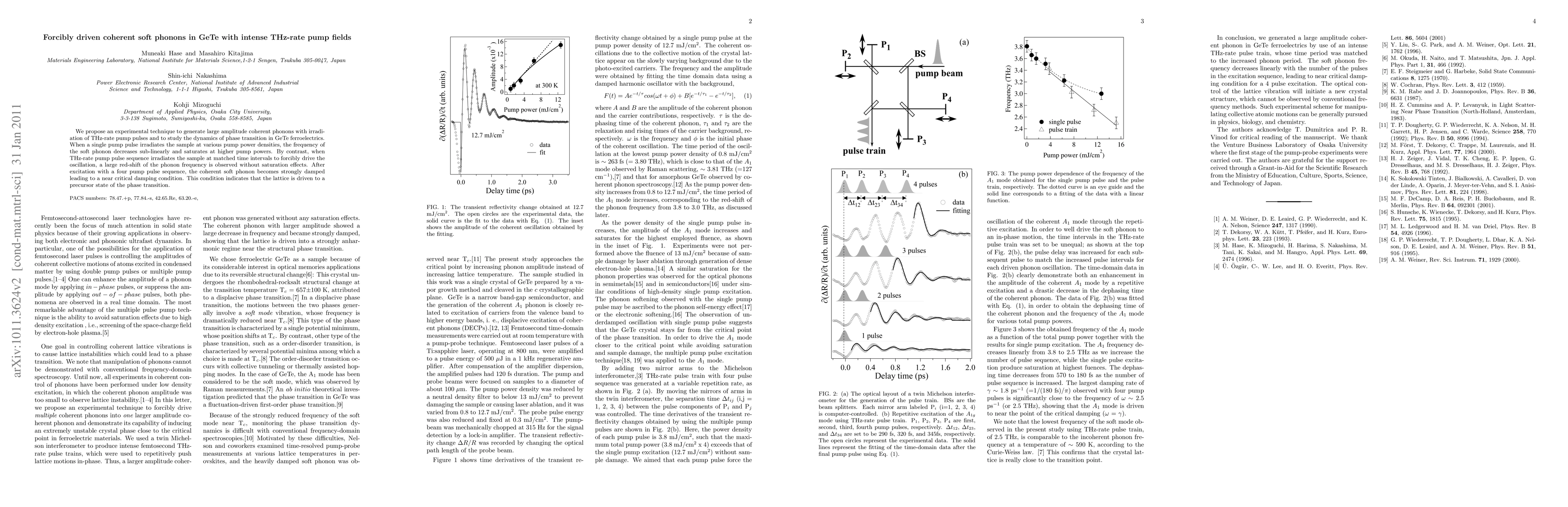 We propose an experimental technique to generate large amplitude coherent phonons with irradiation of THz-rate pump pulses and to study the dynamics of phase transition in GeTe ferroelectrics. When a single pump pulse irradiates the sample at various pump power densities, the frequency of the soft phonon decreases sub-linearly and saturates at higher pump powers. By contrast, when THz-rate pump pulse sequence irradiates the sample at matched time intervals to forcibly drive the oscillation, a large red-shift of the phonon frequency is observed without saturation effects. After excitation with a four pump pulse sequence, the coherent soft phonon becomes strongly damped leading to a near critical damping condition. This condition indicates that the lattice is driven to a precursor state of the phase transition.