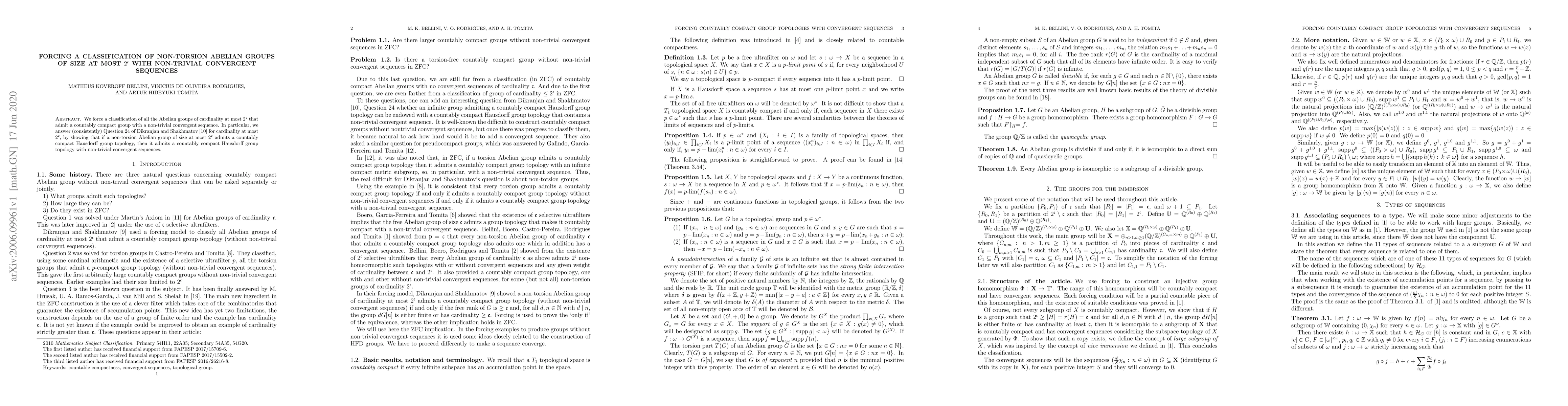 The research employs a forcing technique to classify non-torsion Abelian groups of cardinality at most $2^\mathfrak c$ with non-trivial convergent sequences, answering a specific question about countably compact group topologies.
