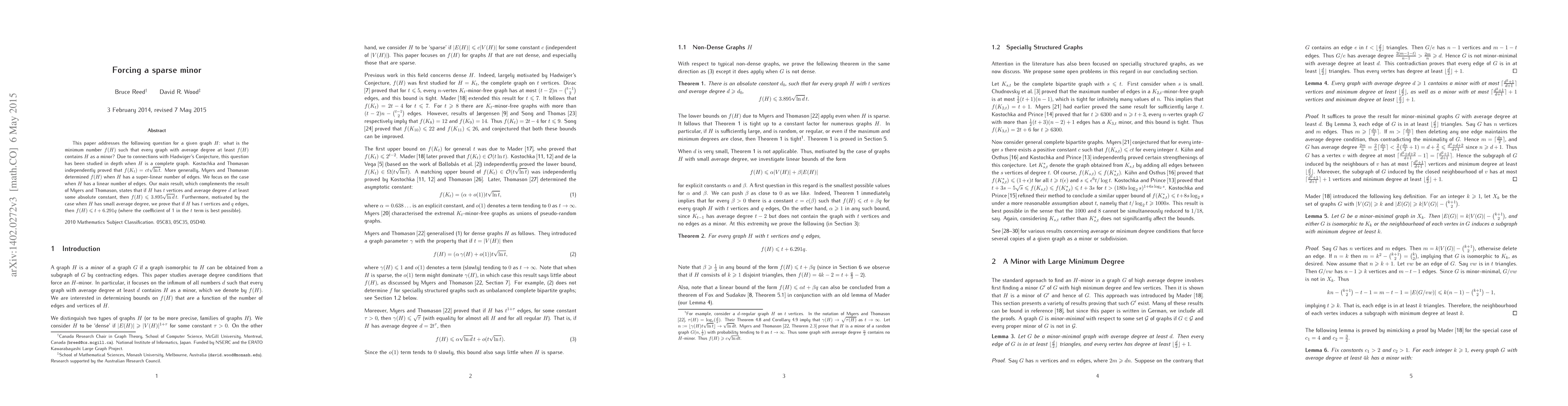 This paper determines the minimum average degree $f(H)$ such that any graph with this average degree contains $H$ as a minor, focusing on sparse graphs with linear edges. The main result shows $f(H) \leq 3.895\sqrt{\ln d}\,t$ for graphs with sufficient average degree, and $f(H) \leq t+6.291q$ for graphs with small average degree.