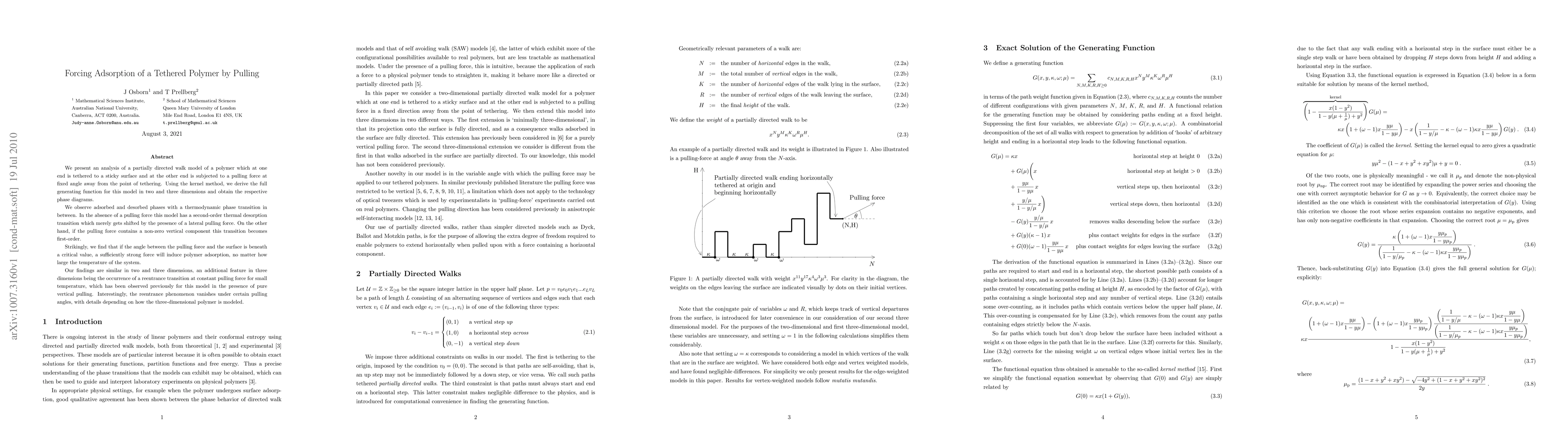 This paper analyzes a polymer model subjected to a pulling force at a fixed angle, revealing a phase transition between adsorbed and desorbed states. The presence of a vertical component in the pulling force turns the transition into a first-order one, while a sufficiently strong lateral force can force adsorption regardless of temperature, provided the angle is below a critical threshold.