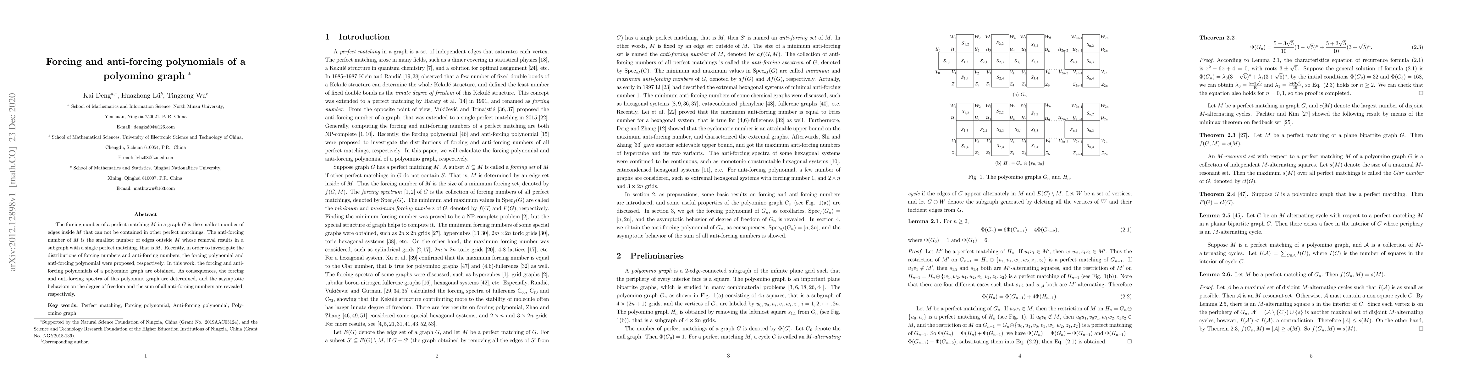 The forcing number of a perfect matching $M$ in a graph $G$ is the smallest number of edges inside $M$ that can not be contained in other perfect matchings. The anti-forcing number of $M$ is the smallest number of edges outside $M$ whose removal results in a subgraph with a single perfect matching, that is $M$. Recently, in order to investigate the distributions of forcing numbers and anti-forcing numbers, the forcing polynomial and anti-forcing polynomial were proposed, respectively. In this work, the forcing and anti-forcing polynomials of a polyomino graph are obtained. As consequences, the forcing and anti-forcing spectra of this polyomino graph are determined, and the asymptotic behaviors on the degree of freedom and the sum of all anti-forcing numbers are revealed, respectively.