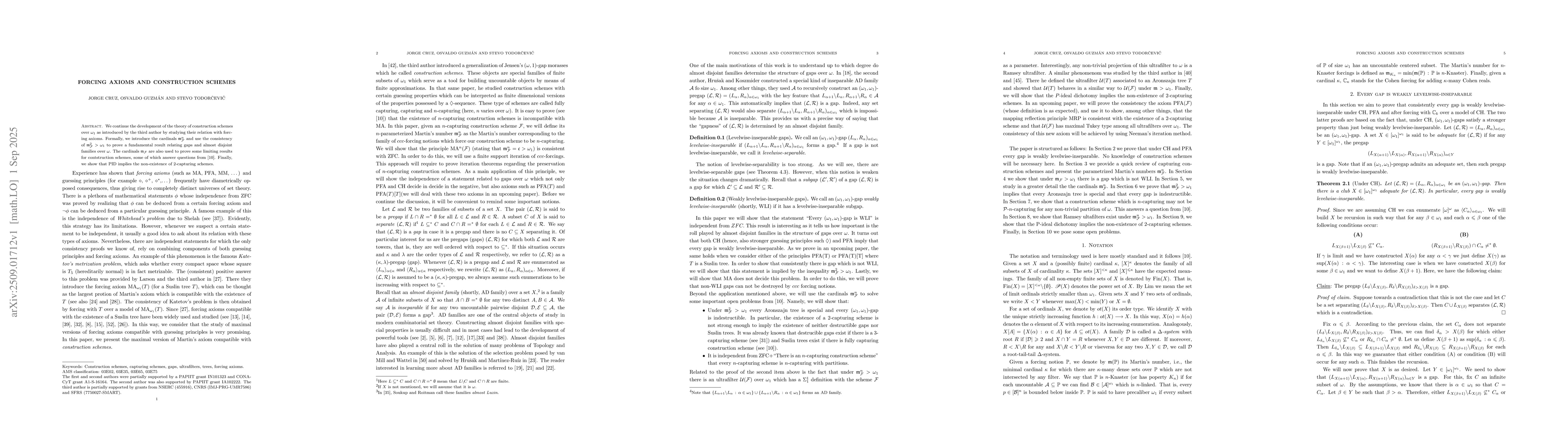We continue the development of the theory of construction schemes over $\omega_1$ as introduced by the third author by studying their relation with forcing axioms. Formally, we introduce the cardinals $\mathfrak{m}^n_{\mathcal{F}}$ and use the consistency of $\mathfrak{m}^2_\mathcal{F}>\omega_1$ to prove a fundamental result relating gaps and almost disjoint families over $\omega$. The cardinals $\mathfrak{m}_\mathcal{F}$ are also used to prove some limiting results for contstruction schemes, some of which answer questions from \cite{schemescruz}. Finally, we show that PID implies the non-existence of $2$-capturing schemes.