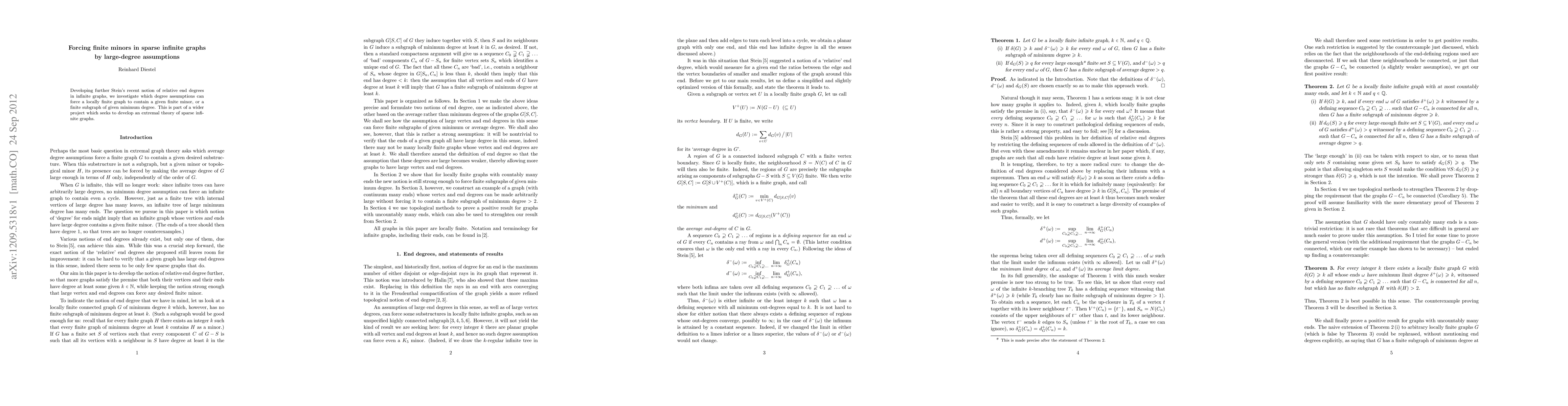 This paper explores how large-degree assumptions can compel sparse infinite graphs to contain specific finite minors or subgraphs with minimum degree, building on Stein's concept of relative end degrees in infinite graphs. It aims to establish an extremal theory for such graphs.
