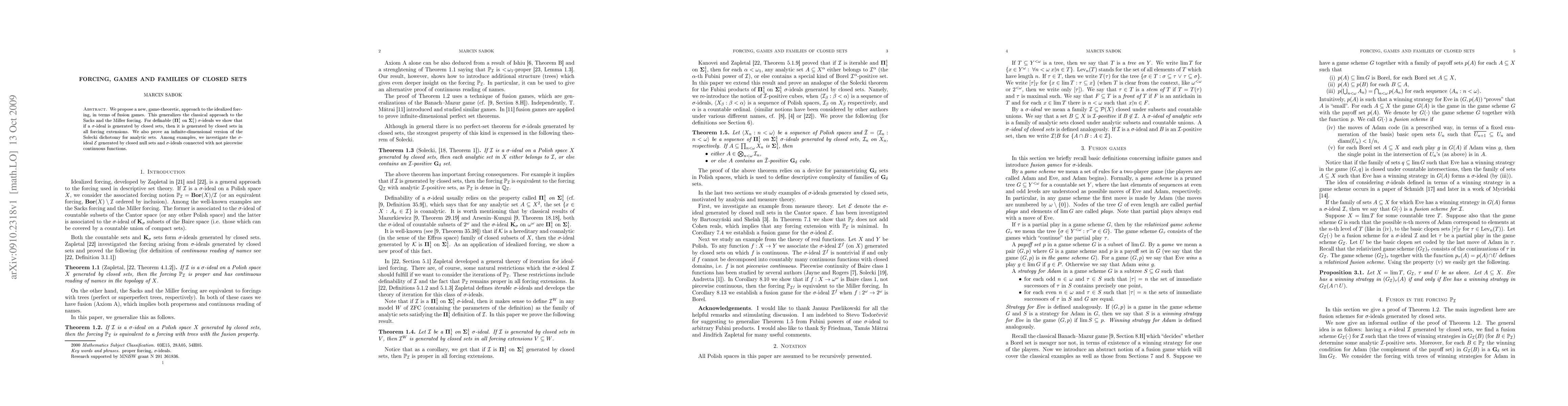 This paper introduces a game-theoretic approach to forcing, generalizing classical methods for Sacks and Miller forcing. It demonstrates that $\sigma$-ideals generated by closed sets remain so in all forcing extensions and proves an infinite-dimensional version of the Solecki dichotomy for analytic sets.