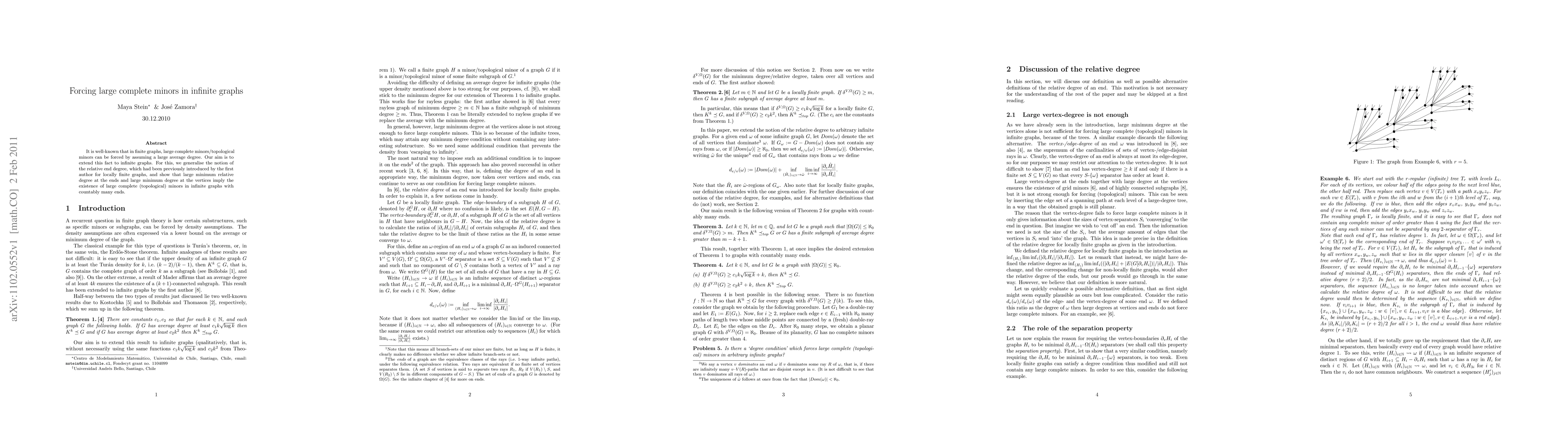This paper extends the concept of large complete minors in finite graphs to infinite graphs by generalizing the notion of relative end degree. It demonstrates that large minimum relative degree at the ends and large minimum degree at the vertices ensure the existence of large complete minors in infinite graphs with countably many ends.