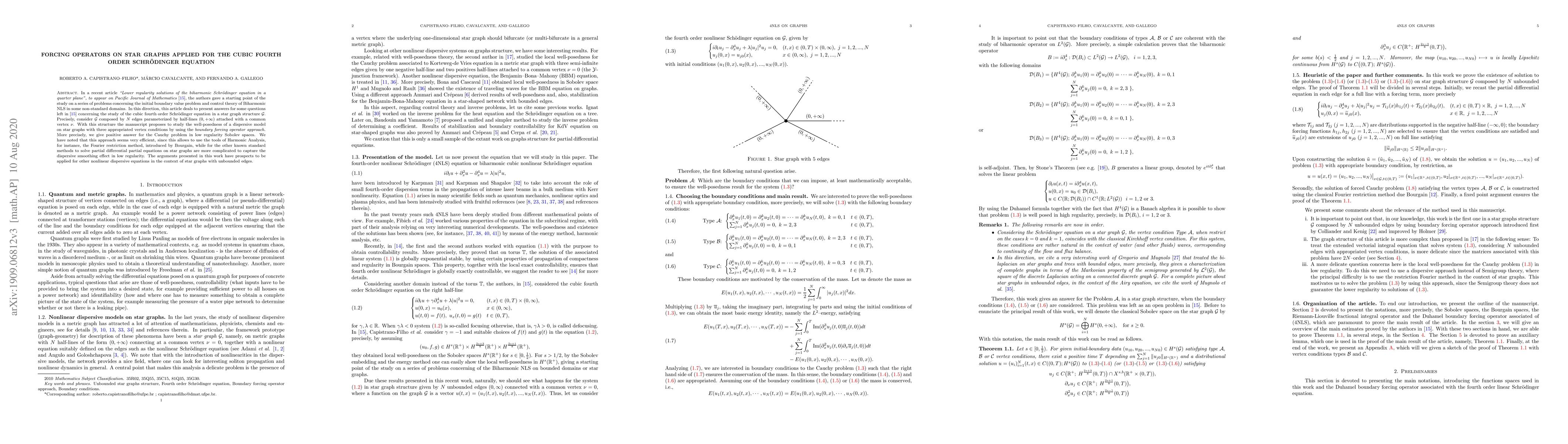 In a recent article \textit{"Lower regularity solutions of the biharmonic Schr\"odinger equation in a quarter plane", to appear on Pacific Journal of Mathematics [15]}, the authors gave a starting point of the study on a series of problems concerning the initial boundary value problem and control theory of Biharmonic NLS in some non-standard domains. In this direction, this article deals to present answers for some questions left in [15] concerning the study of the cubic fourth order Schr\"odinger equation in a star graph structure $\mathcal{G}$. Precisely, consider $\mathcal{G}$ composed by $N$ edges parameterized by half-lines $(0,+\infty)$ attached with a common vertex $\nu$. With this structure the manuscript proposes to study the well-posedness of a dispersive model on star graphs with three appropriated vertex conditions by using the \textit{boundary forcing operator approach}. More precisely, we give positive answer for the Cauchy problem in low regularity Sobolev spaces. We have noted that this approach seems very efficient, since this allows to use the tools of Harmonic Analysis, for instance, the Fourier restriction method, introduced by Bourgain, while for the other known standard methods to solve partial differential partial equations on star graphs are more complicated to capture the dispersive smoothing effect in low regularity. The arguments presented in this work have prospects to be applied for other nonlinear dispersive equations in the context of star graphs with unbounded edges.