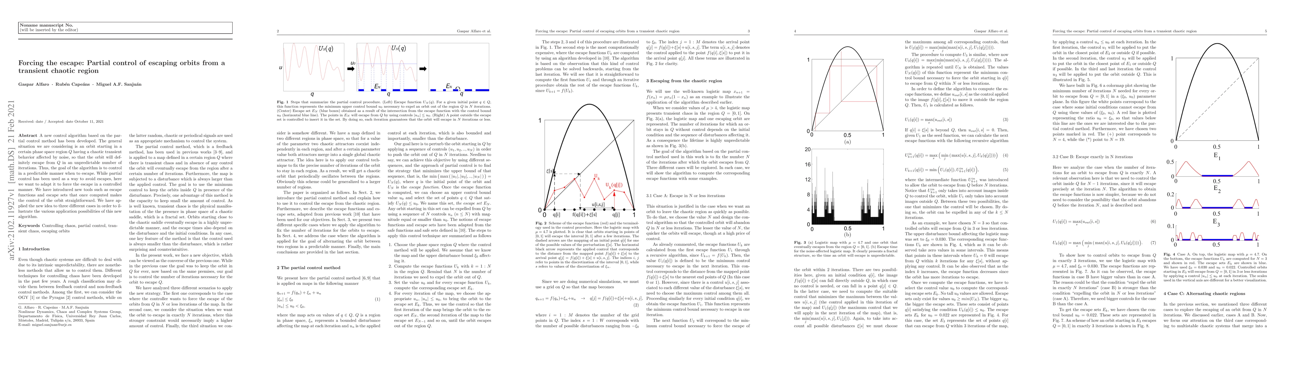 A new control algorithm based on the partial control method has been developed. The general situation we are considering is an orbit starting in a certain phase space region Q having a chaotic transient behavior affected by noise, so that the orbit will definitely escape from Q in an unpredictable number of iterations. Thus, the goal of the algorithm is to control in a predictable manner when to escape. While partial control has been used as a way to avoid escapes, here we want to adapt it to force the escape in a controlled manner. We have introduced new tools such as escape functions and escape sets that once computed makes the control of the orbit straightforward. We have applied the new idea to three different cases in order to illustrate the various application possibilities of this new algorithm.