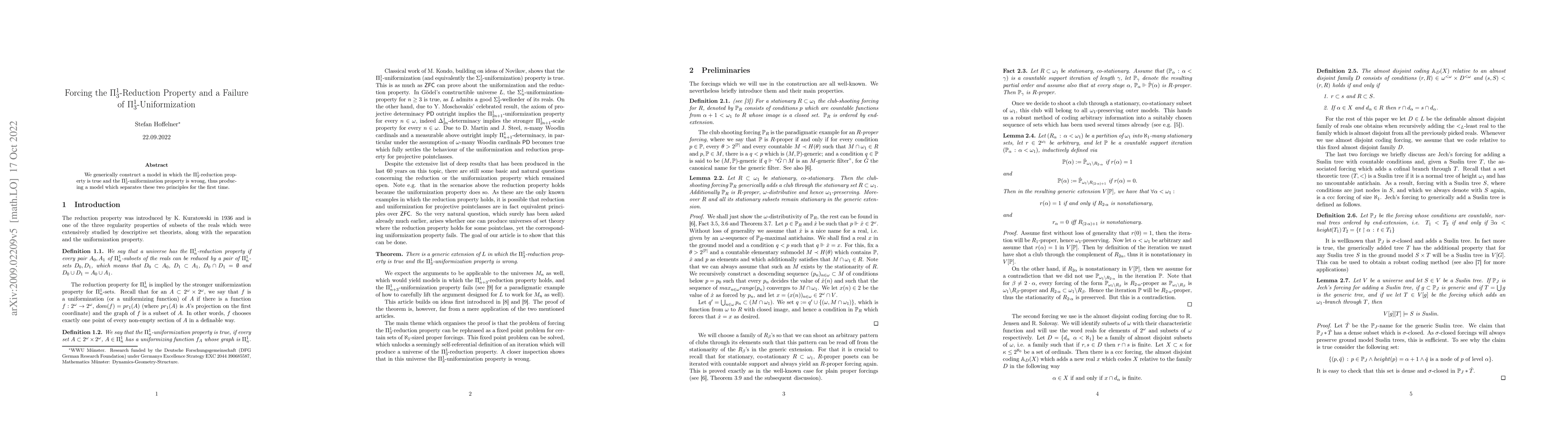 This paper demonstrates a forcing method over the constructible universe to achieve a model with the $\Pi^1_3$-reduction property, reducing the required large cardinal strength to ZFC. It also shows the failure of $\Pi^1_3$-uniformization in this model, distinguishing these two principles for the first time.