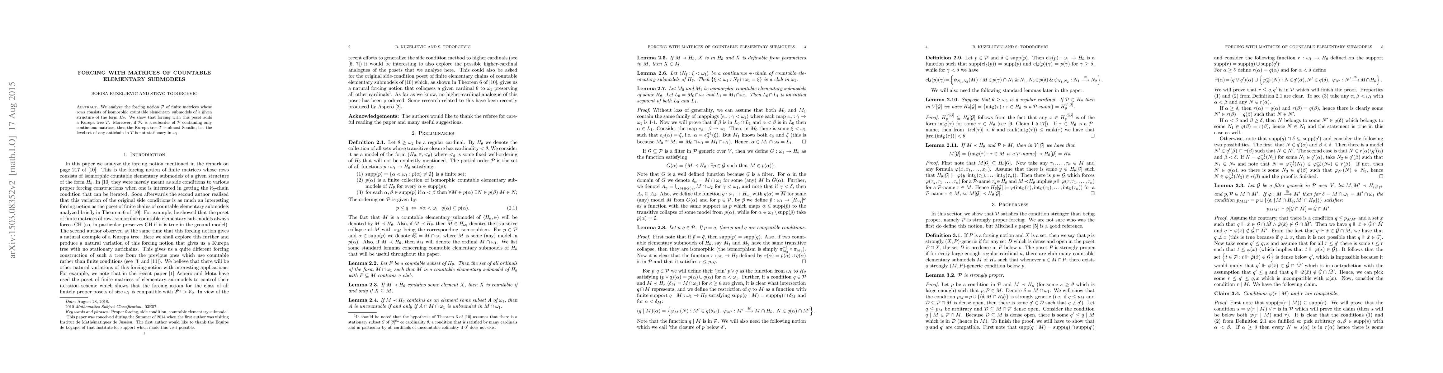 This paper explores the forcing notion $\mathcal P$ of finite matrices of countable elementary submodels of $H_{\theta}$, demonstrating that it adds a Kurepa tree $T$. Additionally, a suborder $\mathcal P_c$ of $\mathcal P$ consisting of continuous matrices results in $T$ being almost Souslin, meaning no level set of any antichain in $T$ is stationary in $\omega_1$.