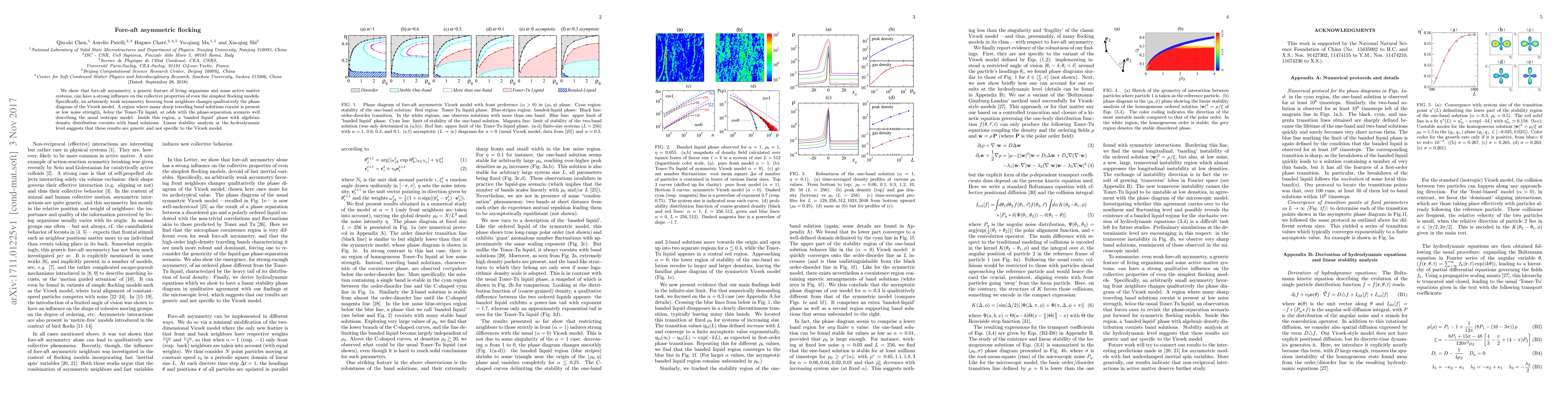 This paper demonstrates that fore-aft asymmetry in flocking models can significantly alter collective behavior, leading to a new phase where sharp traveling band solutions coexist, contrasting with the usual isotropic model's phase separation. The findings suggest these results are likely generic beyond the Vicsek model.