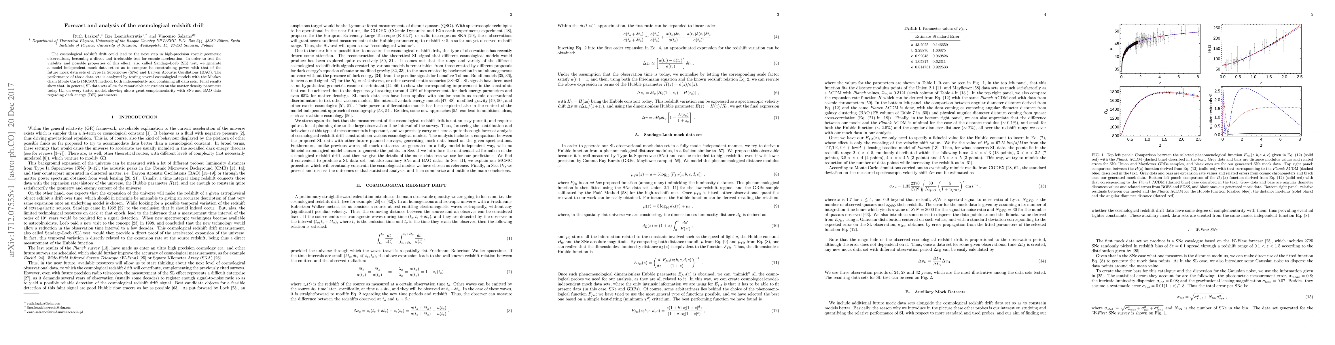The cosmological redshift drift, or Sandage-Loeb test, offers a high-precision method for cosmic geometric observations and serves as a direct test for cosmic acceleration. Mock data analysis reveals that SL data sets provide strong constraints on the matter density parameter and complement Type Ia Supernovae and Baryon Acoustic Oscillations data in determining dark energy parameters.