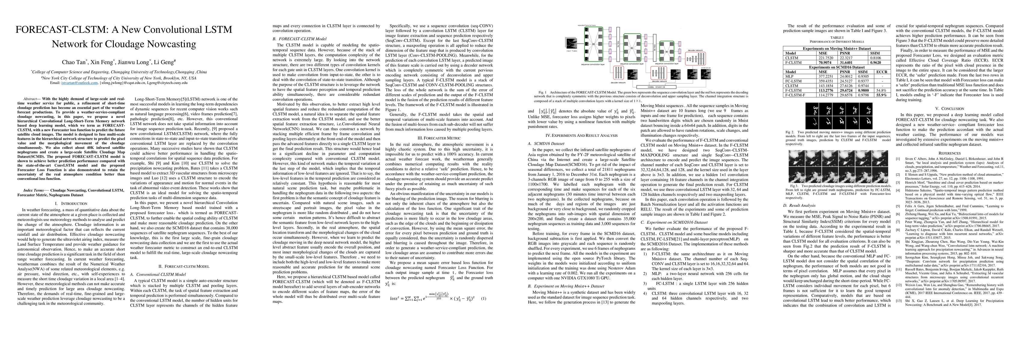 With the highly demand of large-scale and real-time weather service for public, a refinement of short-time cloudage prediction has become an essential part of the weather forecast productions. To provide a weather-service-compliant cloudage nowcasting, in this paper, we propose a novel hierarchical Convolutional Long-Short-Term Memory network based deep learning model, which we term as FORECAST-CLSTM, with a new Forecaster loss function to predict the future satellite cloud images. The model is designed to fuse multi-scale features in the hierarchical network structure to predict the pixel value and the morphological movement of the cloudage simultaneously. We also collect about 40K infrared satellite nephograms and create a large-scale Satellite Cloudage Map Dataset(SCMD). The proposed FORECAST-CLSTM model is shown to achieve better prediction performance compared with the state-of-the-art ConvLSTM model and the proposed Forecaster Loss Function is also demonstrated to retain the uncertainty of the real atmosphere condition better than conventional loss function.
