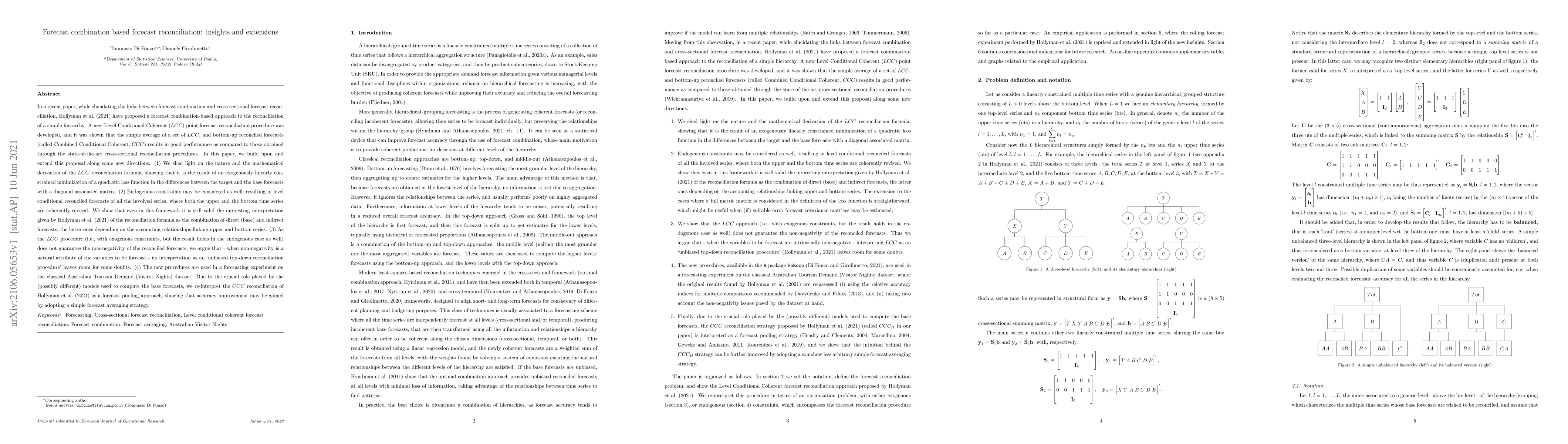 This paper extends the forecast combination-based reconciliation approach proposed by Hollyman et al. (2021), providing deeper insights into the Level Conditional Coherent (LCC) reconciliation formula and introducing new endogenous constraints. The study also highlights the limitations of LCC in ensuring non-negativity and proposes a forecast pooling approach for improved accuracy using the Australian Tourism Demand dataset.