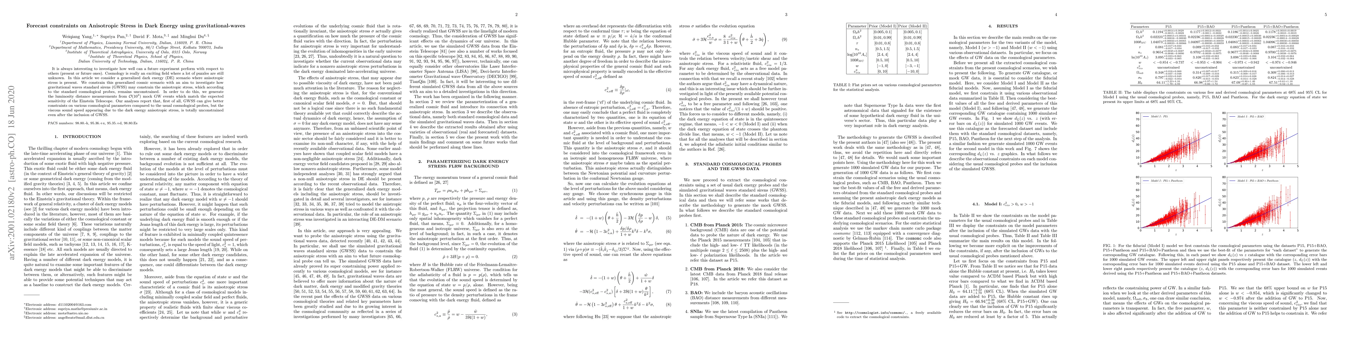 It is always interesting to investigate how well can a future experiment perform with respect to others (present or future ones). Cosmology is really an exciting field where a lot of puzzles are still unknown. In this article we consider a generalized dark energy (DE) scenario where anisotropic stress is present. We constrain this generalized cosmic scenario with an aim to investigate how gravitational waves standard sirens (GWSS) may constrain the anisotropic stress, which according to the standard cosmological probes, remains unconstrained. In order to do this, we generate the luminosity distance measurements from $\mathcal{O} (10^3)$ mock GW events which match the expected sensitivity of the Einstein Telescope. Our analyses report that, first of all, GWSS can give better constraints on various cosmological parameters compared to the usual cosmological probes, but the viscous sound speed appearing due to the dark energy anisotropic stress, is totally unconstrained even after the inclusion of GWSS.