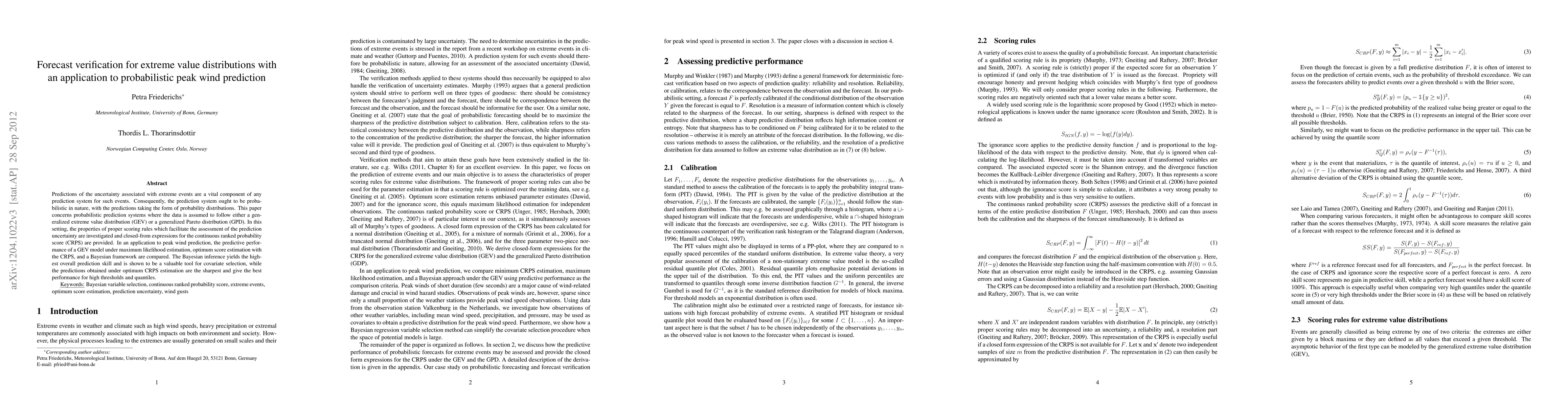 Predictions of the uncertainty associated with extreme events are a vital component of any prediction system for such events. Consequently, the prediction system ought to be probabilistic in nature, with the predictions taking the form of probability distributions. This paper concerns probabilistic prediction systems where the data is assumed to follow either a generalized extreme value distribution (GEV) or a generalized Pareto distribution (GPD). In this setting, the properties of proper scoring rules which facilitate the assessment of the prediction uncertainty are investigated and closed-from expressions for the continuous ranked probability score (CRPS) are provided. In an application to peak wind prediction, the predictive performance of a GEV model under maximum likelihood estimation, optimum score estimation with the CRPS, and a Bayesian framework are compared. The Bayesian inference yields the highest overall prediction skill and is shown to be a valuable tool for covariate selection, while the predictions obtained under optimum CRPS estimation are the sharpest and give the best performance for high thresholds and quantiles.