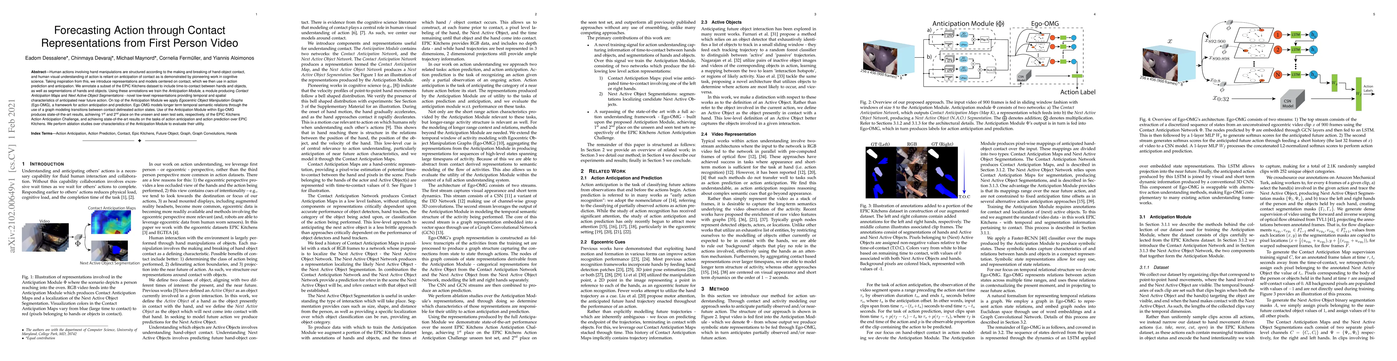 Human actions involving hand manipulations are structured according to the making and breaking of hand-object contact, and human visual understanding of action is reliant on anticipation of contact as is demonstrated by pioneering work in cognitive science. Taking inspiration from this, we introduce representations and models centered on contact, which we then use in action prediction and anticipation. We annotate a subset of the EPIC Kitchens dataset to include time-to-contact between hands and objects, as well as segmentations of hands and objects. Using these annotations we train the Anticipation Module, a module producing Contact Anticipation Maps and Next Active Object Segmentations - novel low-level representations providing temporal and spatial characteristics of anticipated near future action. On top of the Anticipation Module we apply Egocentric Object Manipulation Graphs (Ego-OMG), a framework for action anticipation and prediction. Ego-OMG models longer term temporal semantic relations through the use of a graph modeling transitions between contact delineated action states. Use of the Anticipation Module within Ego-OMG produces state-of-the-art results, achieving 1st and 2nd place on the unseen and seen test sets, respectively, of the EPIC Kitchens Action Anticipation Challenge, and achieving state-of-the-art results on the tasks of action anticipation and action prediction over EPIC Kitchens. We perform ablation studies over characteristics of the Anticipation Module to evaluate their utility.