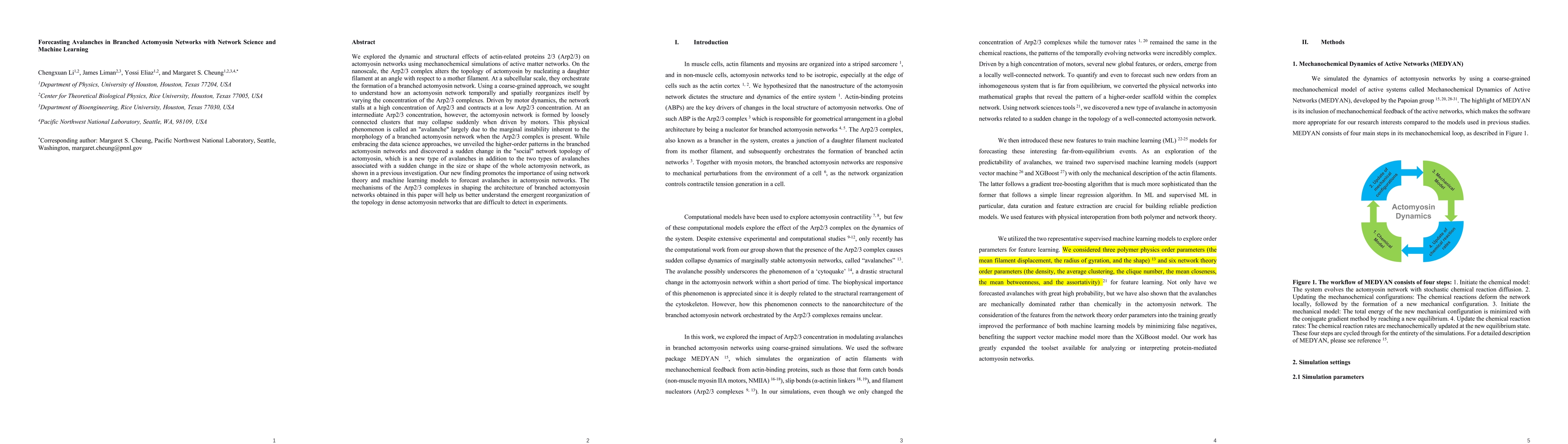 This paper investigates the dynamical and structural effects of Arp2/3 on actomyosin networks using simulations and machine learning. It reveals that actomyosin networks can undergo "avalanches" due to marginal instability, especially at intermediate Arp2/3 concentrations, and proposes the use of network science and machine learning to forecast these events.