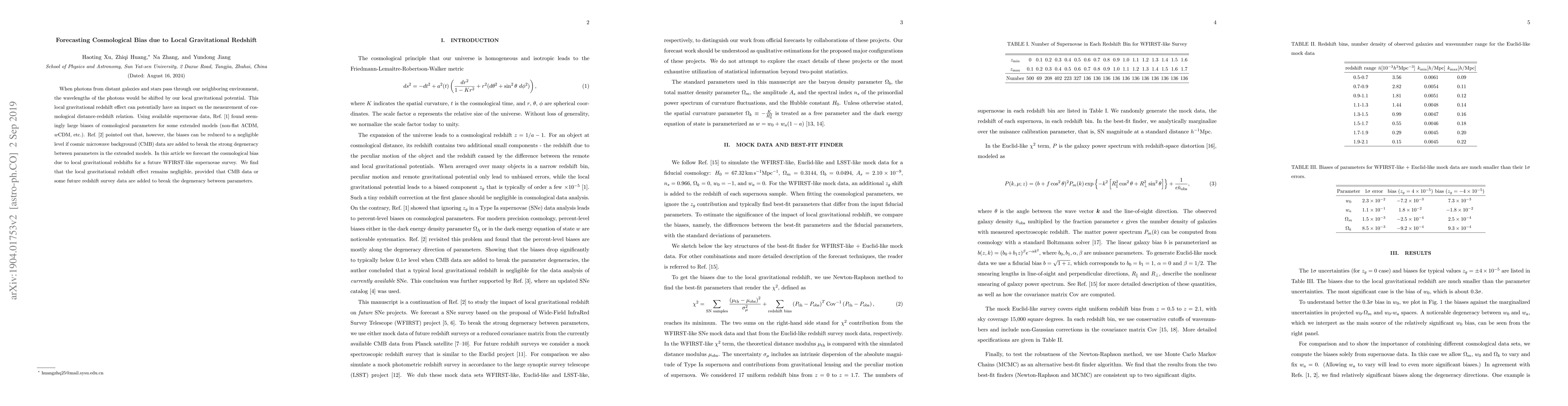 This research forecasts the impact of local gravitational redshift on cosmological measurements using future WFIRST-like supernovae surveys. It concludes that with the inclusion of CMB data or future redshift survey data, the effect remains negligible, maintaining the reliability of cosmological parameter estimations.