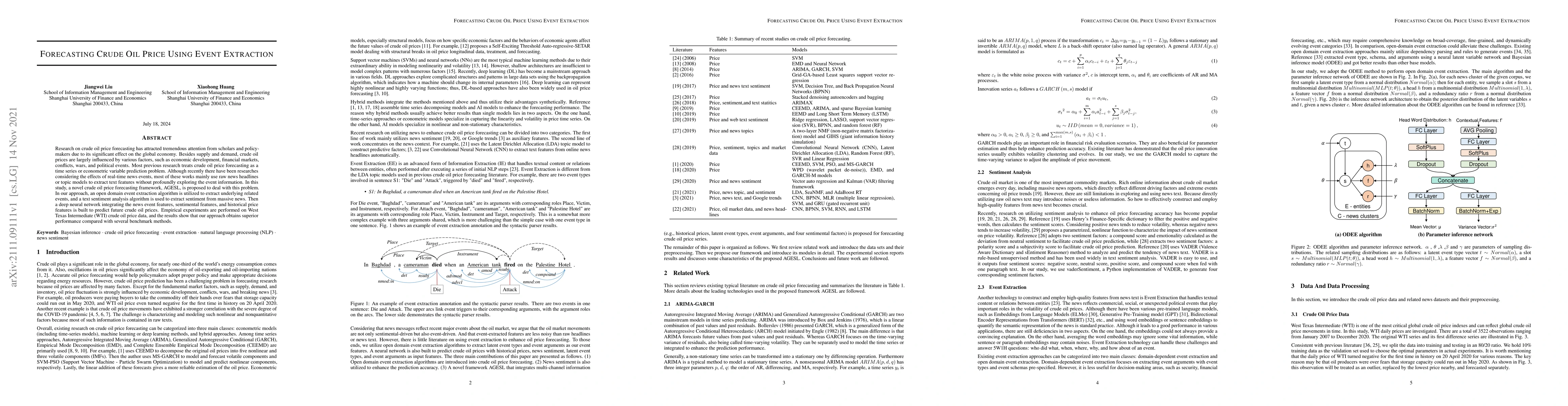 This paper proposes AGESOL, a novel framework for forecasting crude oil prices using an event extraction algorithm to identify relevant news events and a sentiment analysis to gauge public opinion, which are then fed into a deep neural network for predictions. Experimental results on WTI crude oil prices show superior performance over benchmark methods.