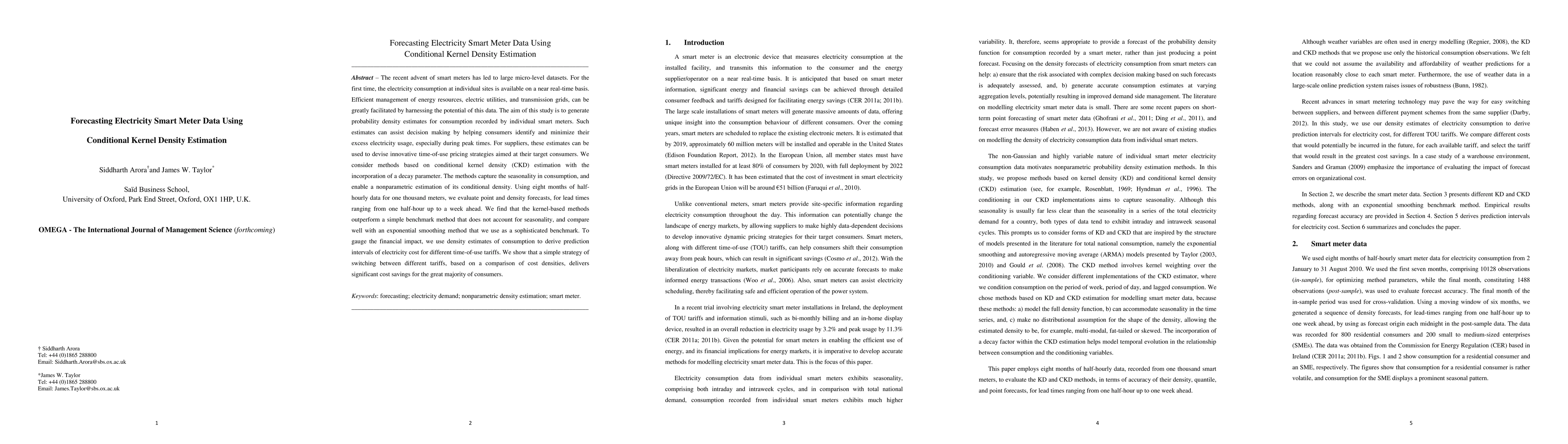 This study uses a new method called conditional kernel density estimation to predict electricity consumption patterns from smart meter data, enabling more efficient energy management and cost savings for consumers.