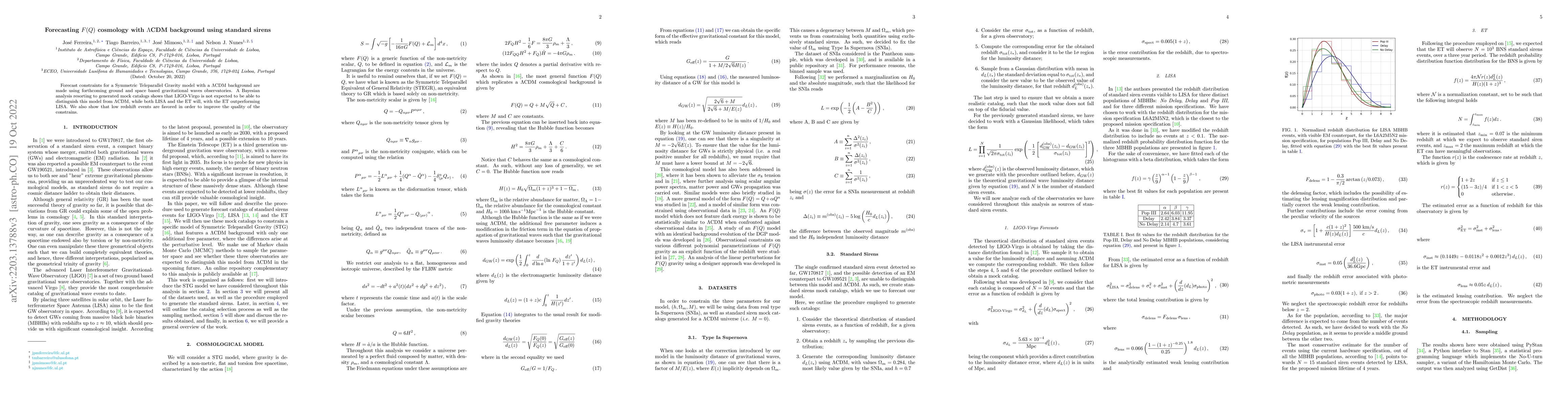Forecast constraints for a Symmetric Teleparallel Gravity model with a $\Lambda$CDM background are made using forthcoming ground and space based gravitational waves observatories. A Bayesian analysis resorting to generated mock catalogs shows that LIGO is not expected to be able to distinguish this model from $\Lambda$CDM, while both LISA and the ET will, with the ET outperforming LISA. We also show that low redshift events are favored in order to improve the quality of the constrains.