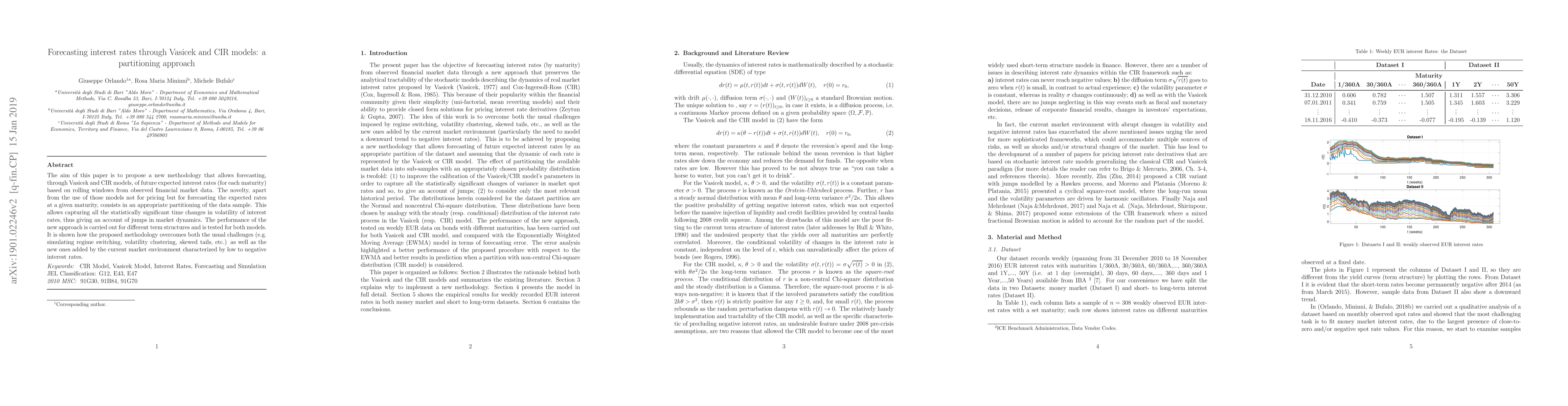 The aim of this paper is to propose a new methodology that allows forecasting, through Vasicek and CIR models, of future expected interest rates (for each maturity) based on rolling windows from observed financial market data. The novelty, apart from the use of those models not for pricing but for forecasting the expected rates at a given maturity, consists in an appropriate partitioning of the data sample. This allows capturing all the statistically significant time changes in volatility of interest rates, thus giving an account of jumps in market dynamics. The performance of the new approach is carried out for different term structures and is tested for both models. It is shown how the proposed methodology overcomes both the usual challenges (e.g. simulating regime switching, volatility clustering, skewed tails, etc.) as well as the new ones added by the current market environment characterized by low to negative interest rates.