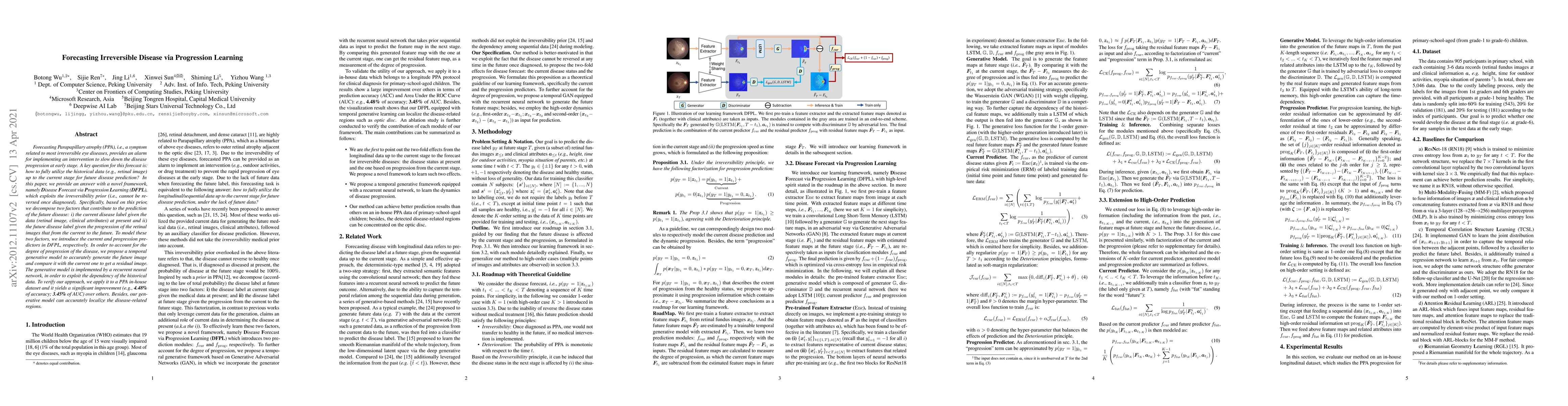 This paper introduces a novel framework, Disease Forecast via Progression Learning (DFPL), to predict the progression of Parapapillary atrophy (PPA) using historical retinal image data. DFPL utilizes an irreversibility prior to decompose current and future disease labels, employing current and progression predictors, and a temporal generative model to generate future images for accurate disease prediction, showing significant improvements over existing methods.