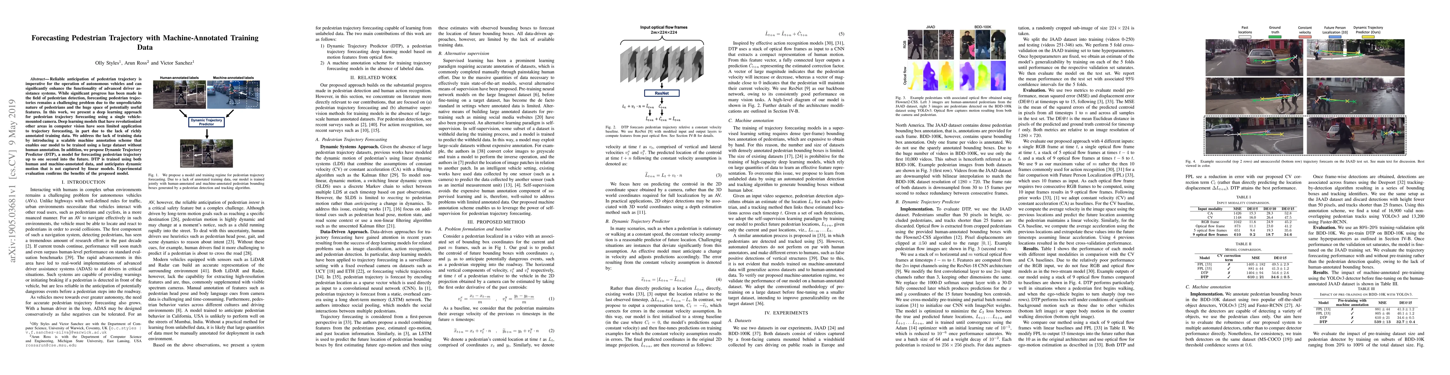 Reliable anticipation of pedestrian trajectory is imperative for the operation of autonomous vehicles and can significantly enhance the functionality of advanced driver assistance systems. While significant progress has been made in the field of pedestrian detection, forecasting pedestrian trajectories remains a challenging problem due to the unpredictable nature of pedestrians and the huge space of potentially useful features. In this work, we present a deep learning approach for pedestrian trajectory forecasting using a single vehicle-mounted camera. Deep learning models that have revolutionized other areas in computer vision have seen limited application to trajectory forecasting, in part due to the lack of richly annotated training data. We address the lack of training data by introducing a scalable machine annotation scheme that enables our model to be trained using a large dataset without human annotation. In addition, we propose Dynamic Trajectory Predictor (DTP), a model for forecasting pedestrian trajectory up to one second into the future. DTP is trained using both human and machine-annotated data, and anticipates dynamic motion that is not captured by linear models. Experimental evaluation confirms the benefits of the proposed model.