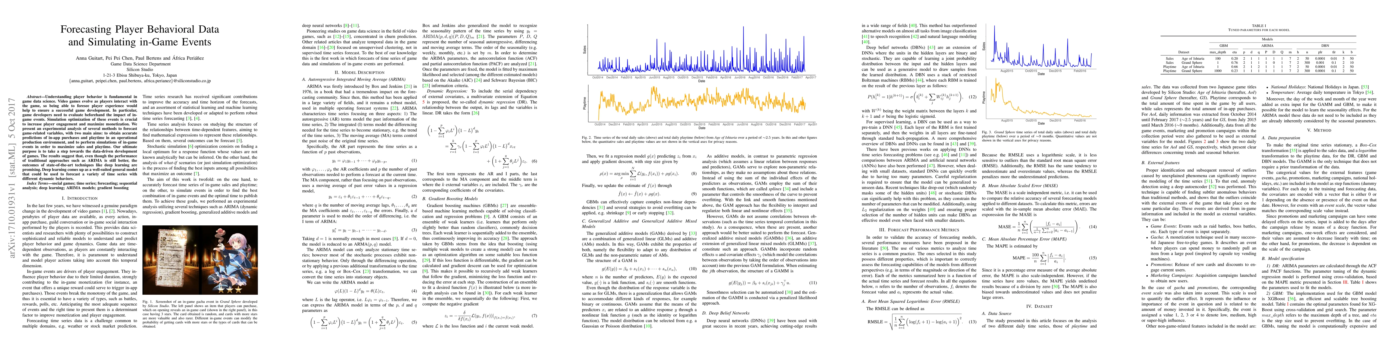 This research explores methods to forecast player behavior and simulate in-game events to enhance game development. While traditional methods like ARIMA remain effective, deep learning techniques show promising results for predicting in-app purchases and playtime, suggesting a potential shift towards data-driven game development.