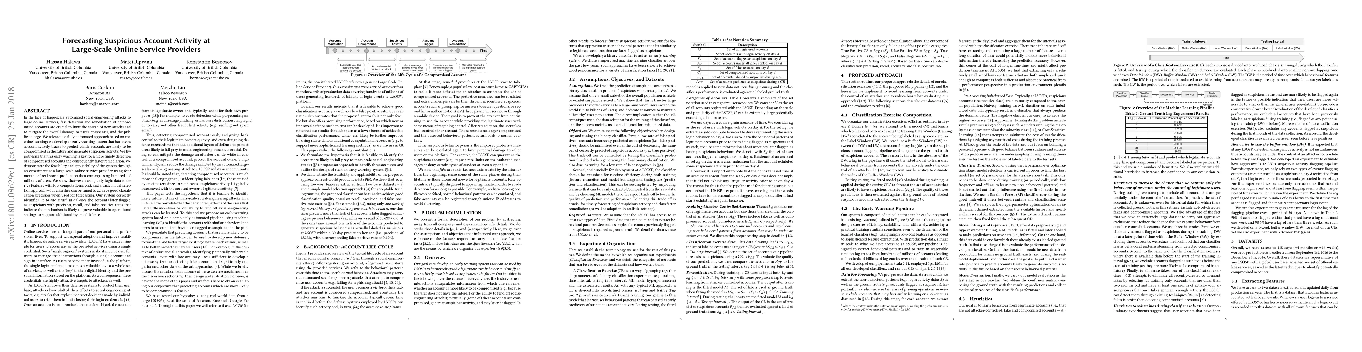 This paper proposes a machine learning-based early warning system to predict and detect compromised accounts in large-scale online services, leveraging account activity traces. The system demonstrates high precision in forecasting suspicious activity up to a month in advance, suggesting its potential value for timely detection and faster remediation of compromised accounts.