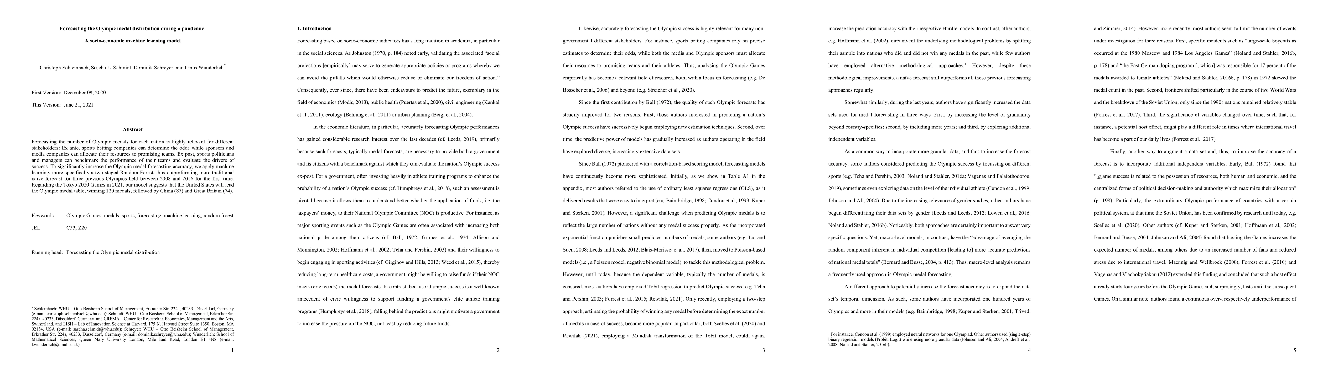 This research develops a machine learning model to forecast Olympic medal distribution, using a two-stage Random Forest approach that outperforms traditional methods. The model predicts the United States will lead in medals for the 2020 Tokyo Games, with minimal impact from the COVID-19 pandemic due to uniform global effects.