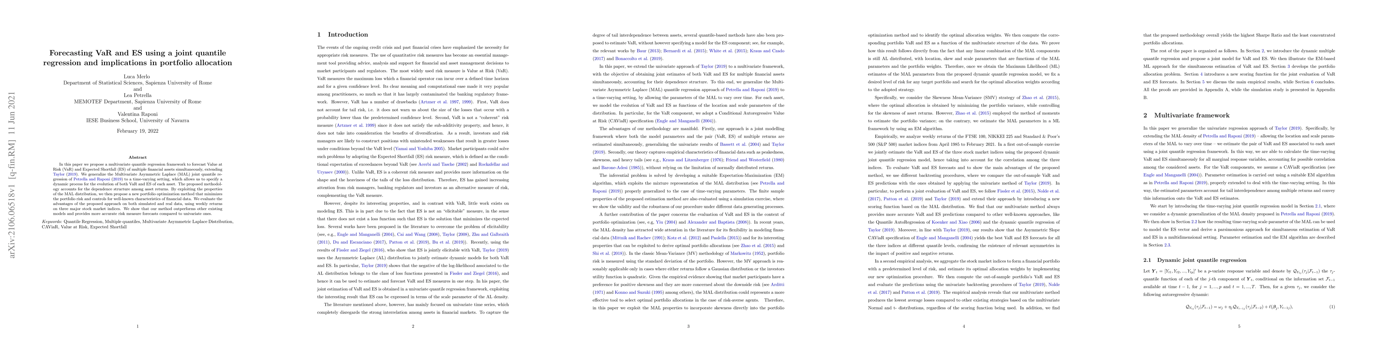 This research is significant as it enhances the accuracy of risk measure forecasts, which is crucial for portfolio management and risk control in finance. By jointly modeling VaR and ES, it accounts for the dependence structure among asset returns, providing a more comprehensive risk assessment.