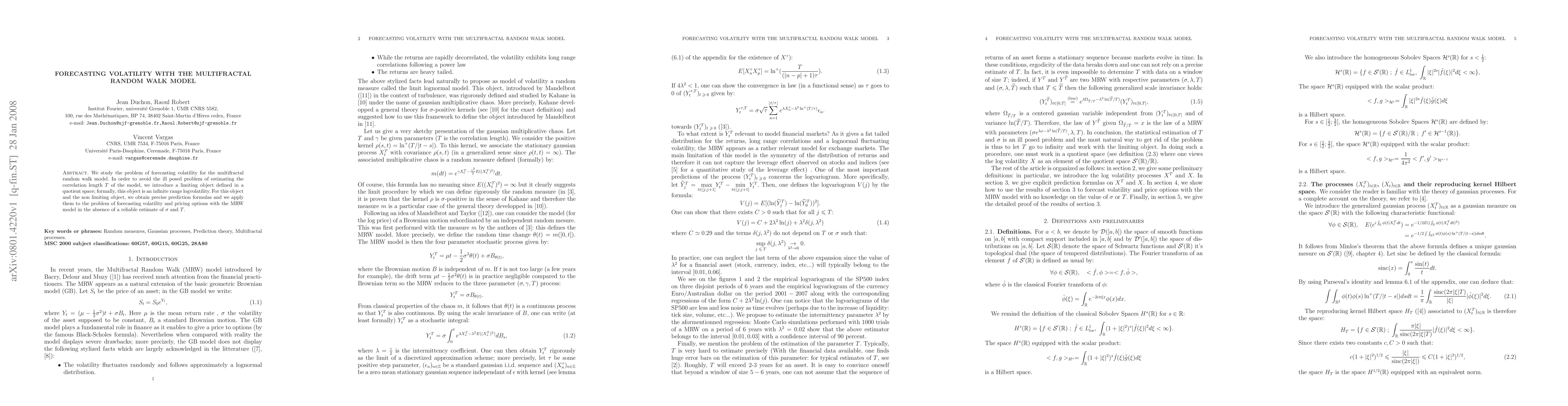 This paper proposes a method for forecasting volatility using the multifractal random walk model, introducing a limiting object called infinite range logvolatility to avoid estimating the correlation length T. It provides precise prediction formulas and applies them to volatility forecasting and option pricing without relying on average volatility or T estimates.