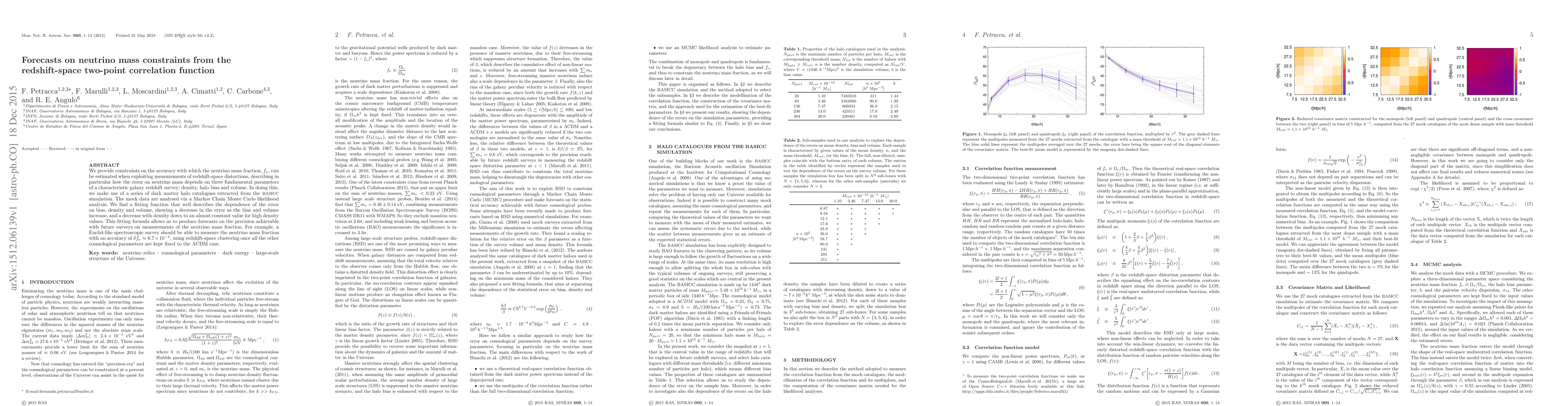 This paper provides constraints on the neutrino mass fraction using redshift-space distortions from galaxy surveys, showing that error decreases with increasing bias and volume. Forecasts suggest a Euclid-like survey could measure the neutrino mass fraction with an accuracy of $\delta f_{\nu} \approx 6.7\times10^{-4}$.