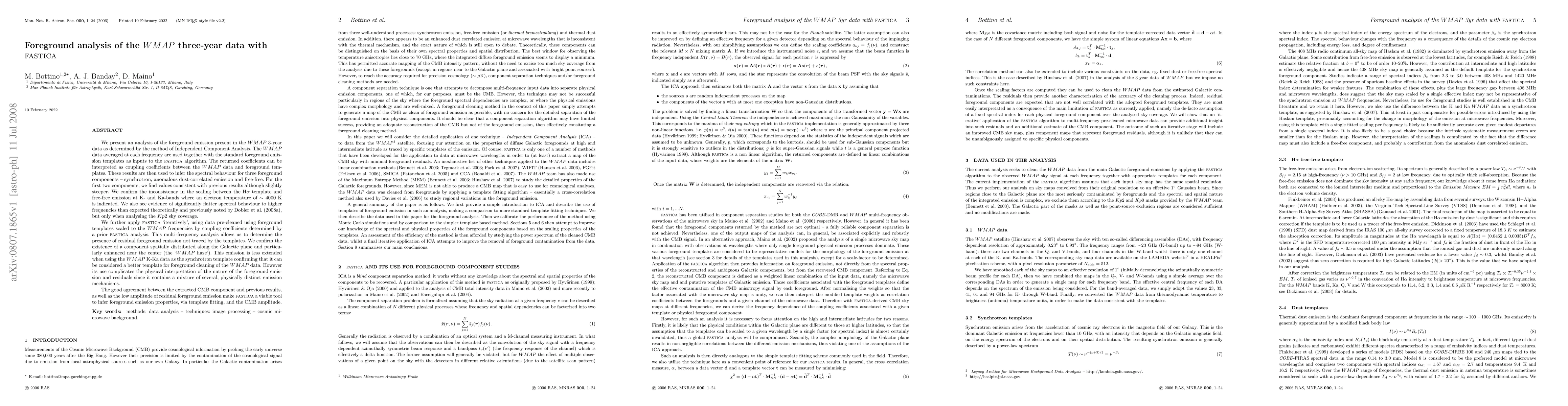 This paper analyzes WMAP 3-year data using Independent Component Analysis (FASTICA) to identify and separate foreground emissions, confirming the spectral behavior of synchrotron and anomalous dust-correlated emission while noting discrepancies in free-free emission. The study also detects residual foreground emission, particularly a 'WMAP haze' along the Galactic plane, which complicates physical interpretation due to mixed emission mechanisms.