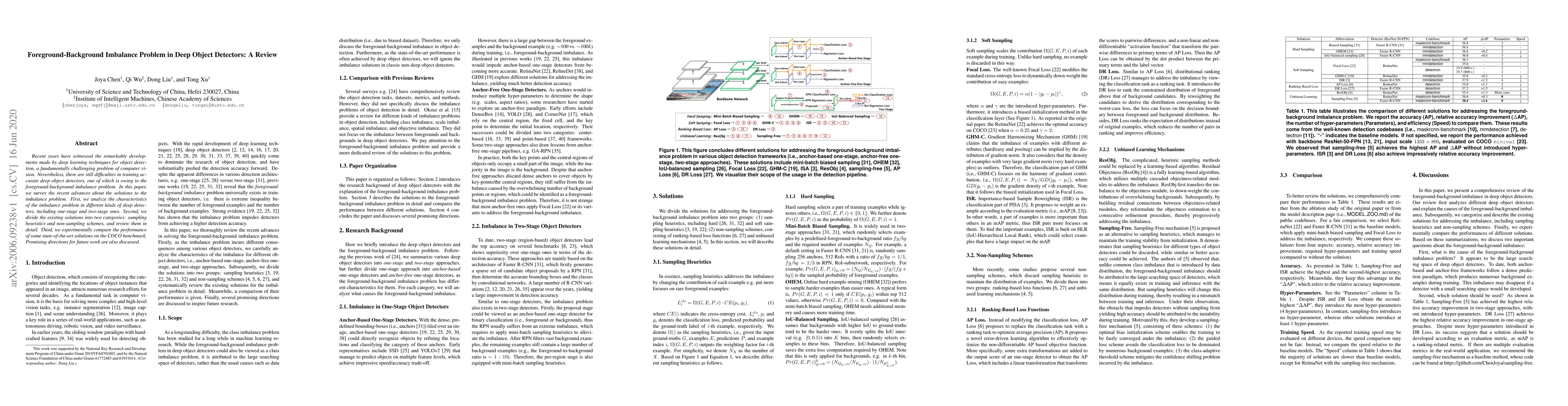 This paper reviews recent solutions to the foreground-background imbalance problem in deep object detectors, focusing on their performance on the COCO benchmark and promising future directions.