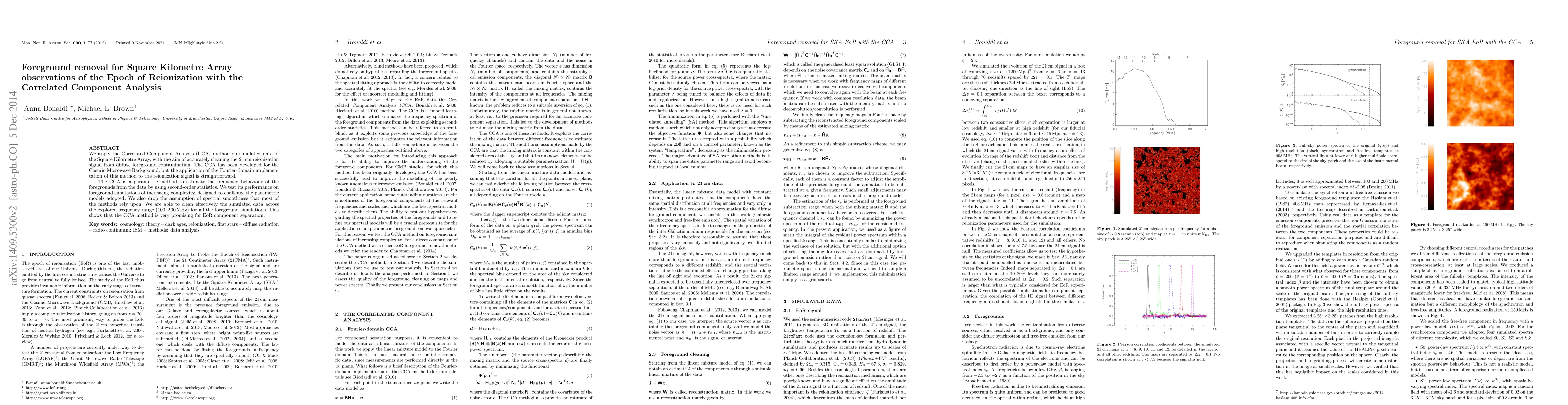 This paper applies the Correlated Component Analysis (CCA) method to Square Kilometre Array data to remove foreground contamination from the 21 cm reionization signal. The CCA method, originally developed for the Cosmic Microwave Background, effectively cleans simulated data across a frequency range of 100-200 MHz, demonstrating its potential for Epoch of Reionization component separation.