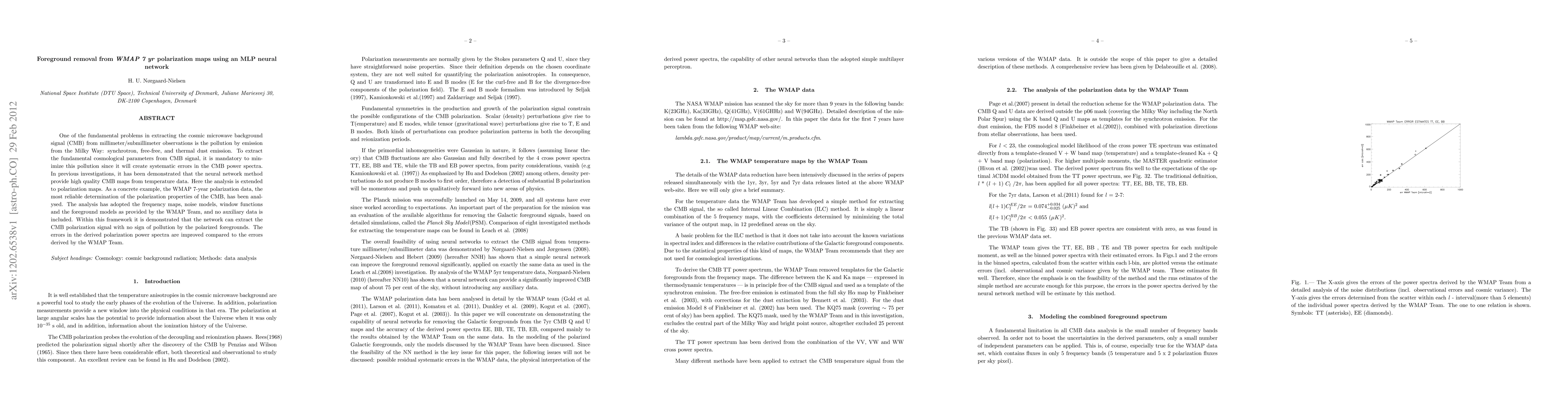 This paper investigates the use of a multi-layer perceptron neural network to remove foreground emissions from WMAP 7-year polarization maps, aiming to extract the cosmic microwave background signal with minimal contamination. The results show improved accuracy in the derived polarization power spectra compared to the WMAP Team's methods.