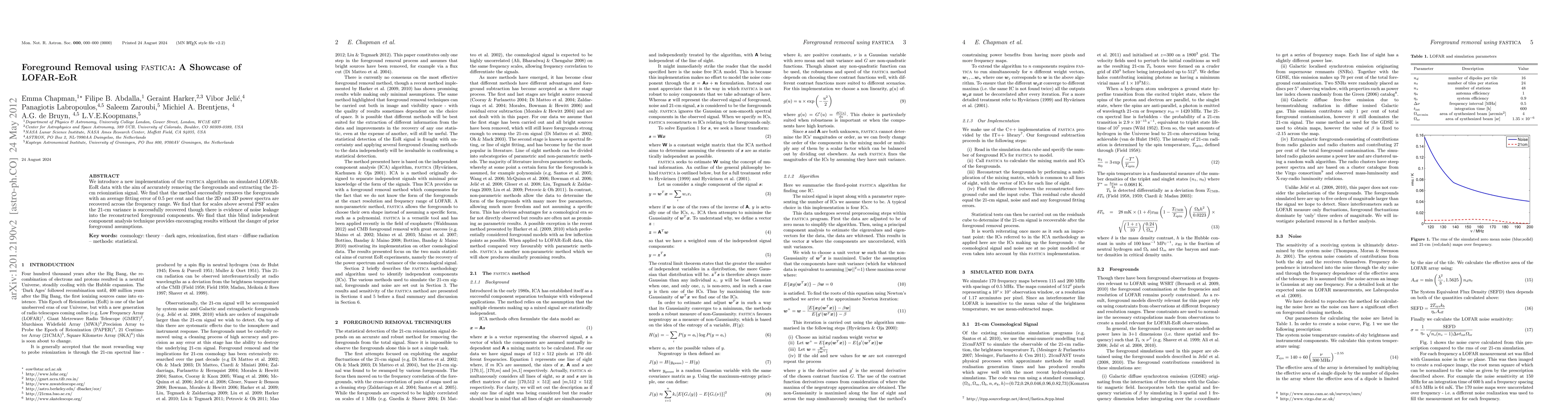 We introduce a new implementation of the FastICA algorithm on simulated LOFAR EoR data with the aim of accurately removing the foregrounds and extracting the 21-cm reionization signal. We find that the method successfully removes the foregrounds with an average fitting error of 0.5 per cent and that the 2D and 3D power spectra are recovered across the frequency range. We find that for scales above several PSF scales the 21-cm variance is successfully recovered though there is evidence of noise leakage into the reconstructed foreground components. We find that this blind independent component analysis technique provides encouraging results without the danger of prior foreground assumptions.